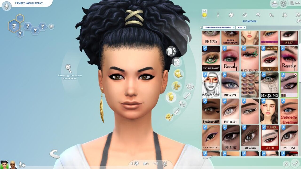 Текстура подводки максимально естественная: тонкая линия не утяжеляет веки и прекрасно смотрится даже при максимальном приближении камеры. Подводка отлично держится на любых текстурах кожи симов и совместима со всеми типами глаз (включая азиатские и монгольские).