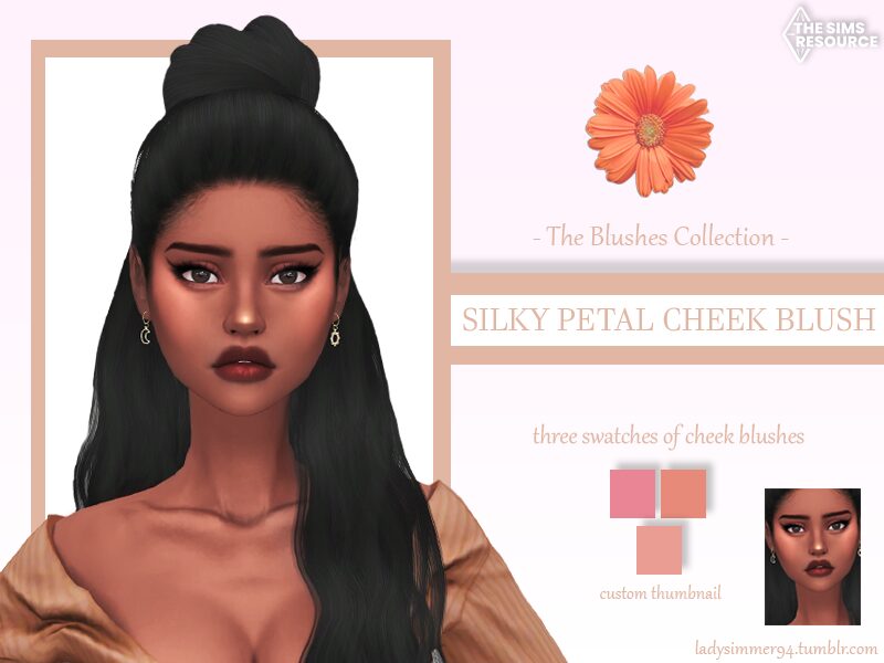 Друзья, симмеры! Представьте нежный румянец, словно лепестки шелкового цветка, касающиеся щек вашей симки. «Silky Petal Cheek Blush» — это идеальное дополнение для вашего гардероба макияжа в The Sims 4. Созданный талантливым LadySimmer94, этот кастомный контент принесет в игру атмосферу легкости и романтики.