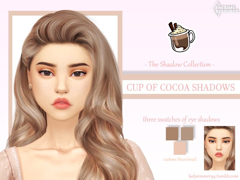 Представляем вам уютные и аппетитные тени для глаз Cup of Cocoa Shadows от талантливого создателя LadySimmer94! Эти тени вдохновлены теплым чашкой какао с маршмеллоу — идеальный выбор для зимних и уютных образов в The Sims 4.