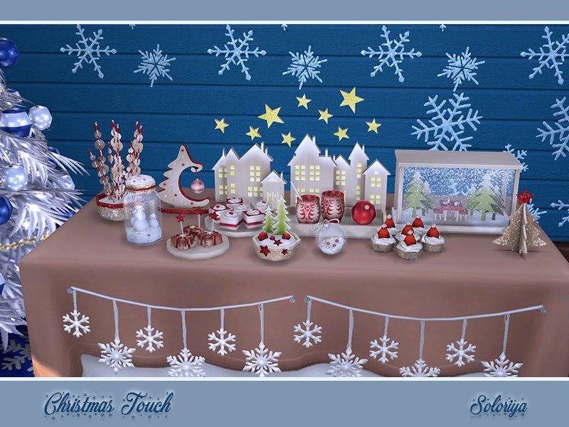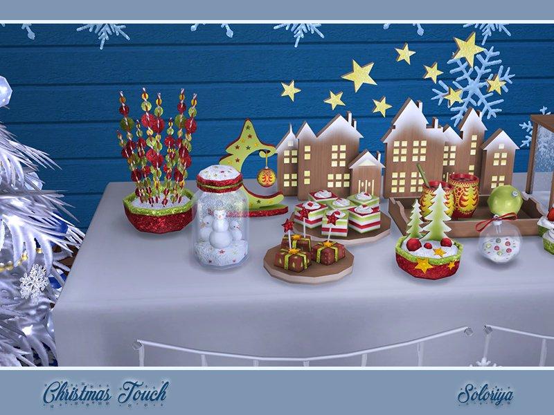 В наборе : декоративные домики со звездами, елочный шар, рождественские елочки в нескольких вариантах, мини-пироженки, кружки с латте, скульптура “Рождественский обед”, снеговик в банке.