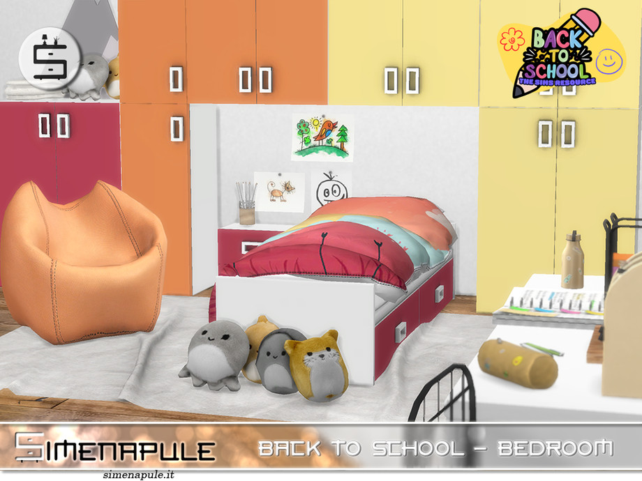 Привет, симмеры! Новый учебный год на пороге, и я подготовила для вас яркий и вдохновляющий набор мебели «Back to School — Bedroom» от талантливого Simenapule. Это идеальное решение для детской комнаты, где каждый уголок дышит радостью и творчеством.