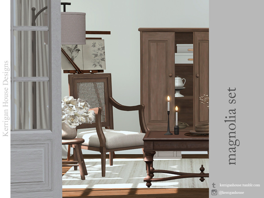 Друзья, Sims-энтузиасты! Представляю вам восхитительный Magnolia Set от талантливого kerriganhouse — идеальное дополнение для уютной гостиной в The Sims 4. Этот набор из семи стильных предметов мебели воплощает чистый современный дизайн, где минимализм встречается с элегантностью. Центральный элемент — мягкое кресло Magnolia Armchair, обитое гладкой тканью, которое манит присесть с книгой или чашкой чая. Рядом — компактный стул Magnolia Stool, универсальный для уюта у окна или как подставка для ног.