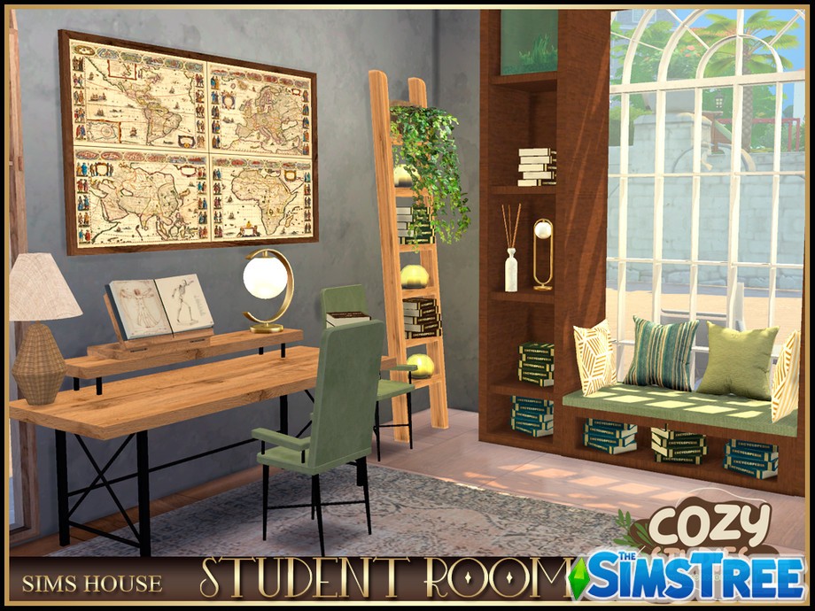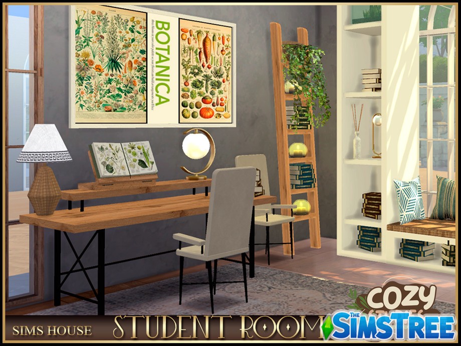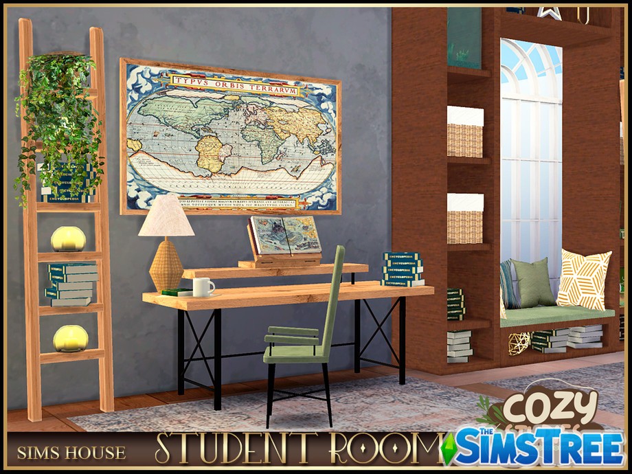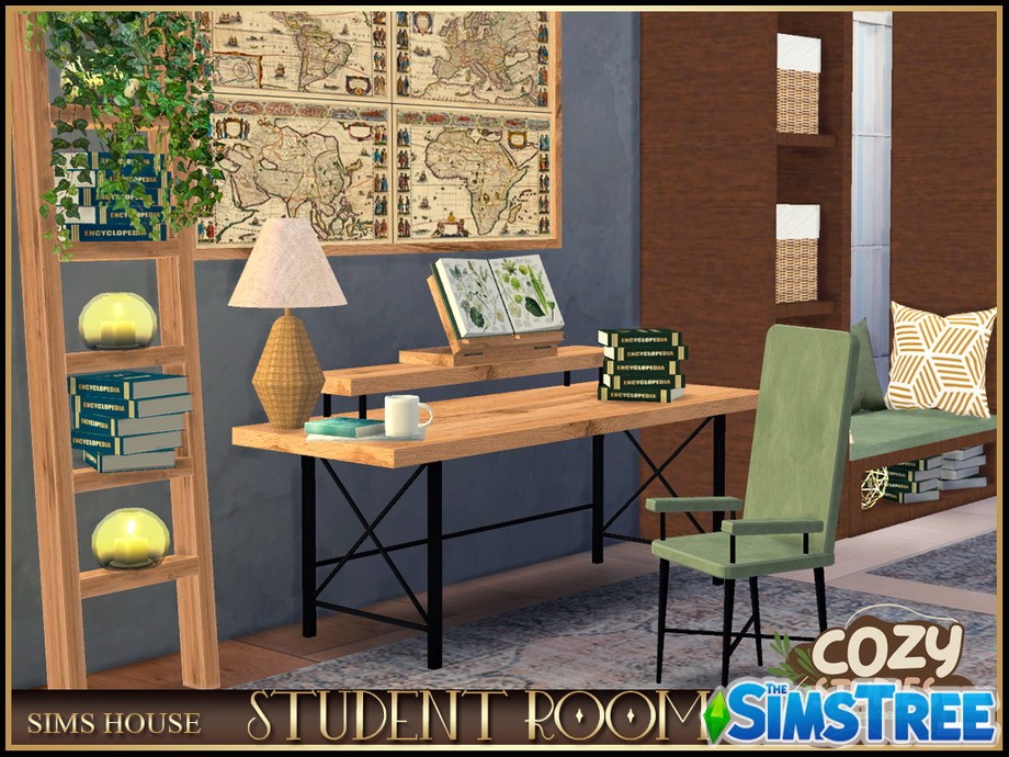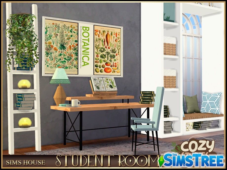 Привет, симс-строители! Представьте уютную комнату для вашего студента в The Sims 4: идеальное пространство для учебы, чтения и вдохновения. Этот набор от Sims_House включает 7 стильных объектов, которые превратят любую спальню в функциональный уголок гения.