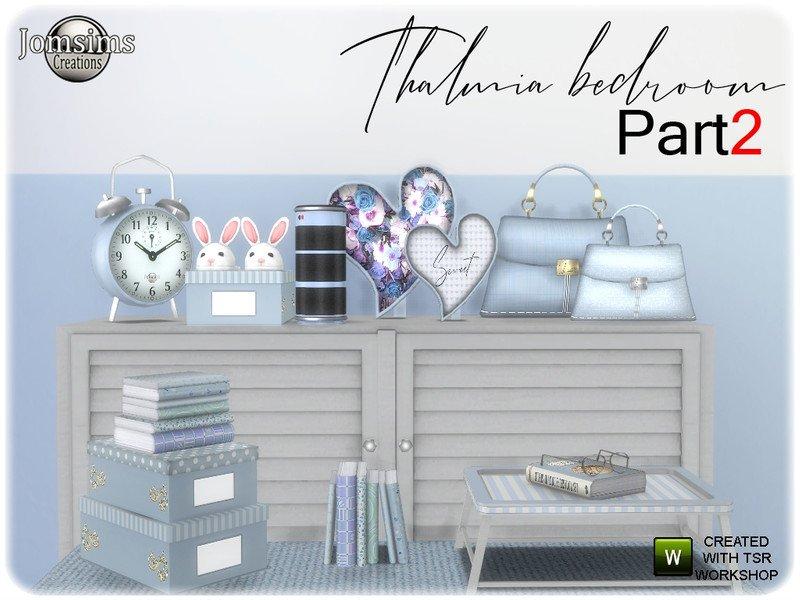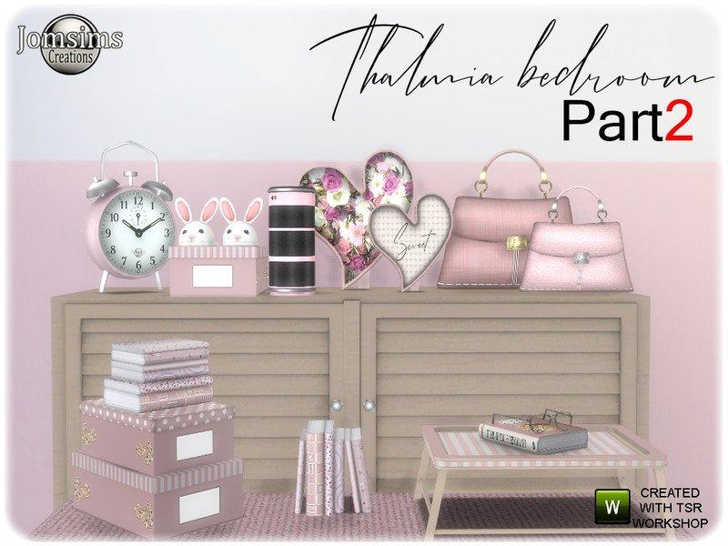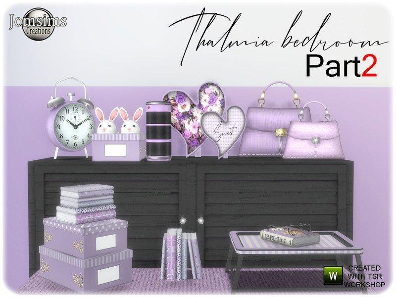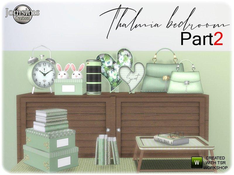 В наборе: декоративные картонные коробки, настольная аудио колонка, две стопки книг, большой ретро-будильник, женские сумочки двух вариантов, две декоративные настольные рамки в форме сердечек, небольшой кофейный столик и тапочки – зайчишки.