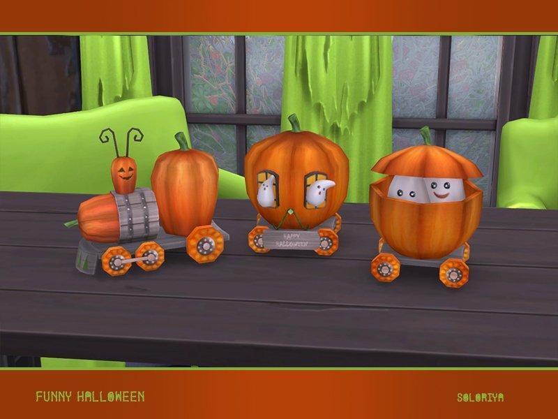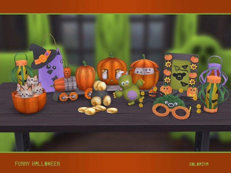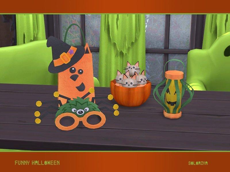 Забавный и милый набор для оформления детской к Хеллоуину. Каждый предмет имеет от одного до трех вариантов перекраски. Найти предметы можно в категории “Декорации” в “Разном”.
