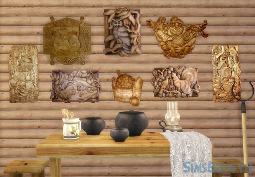 В наборе найдутся функциональные предметы для сауны и бани в русском стиле, деревенском. Для функционирования потребуется расширение День спа. Также в наборе находятся настенные резные деревянные панно, которые можно размещать в любых помещениях. Они не функциональны.