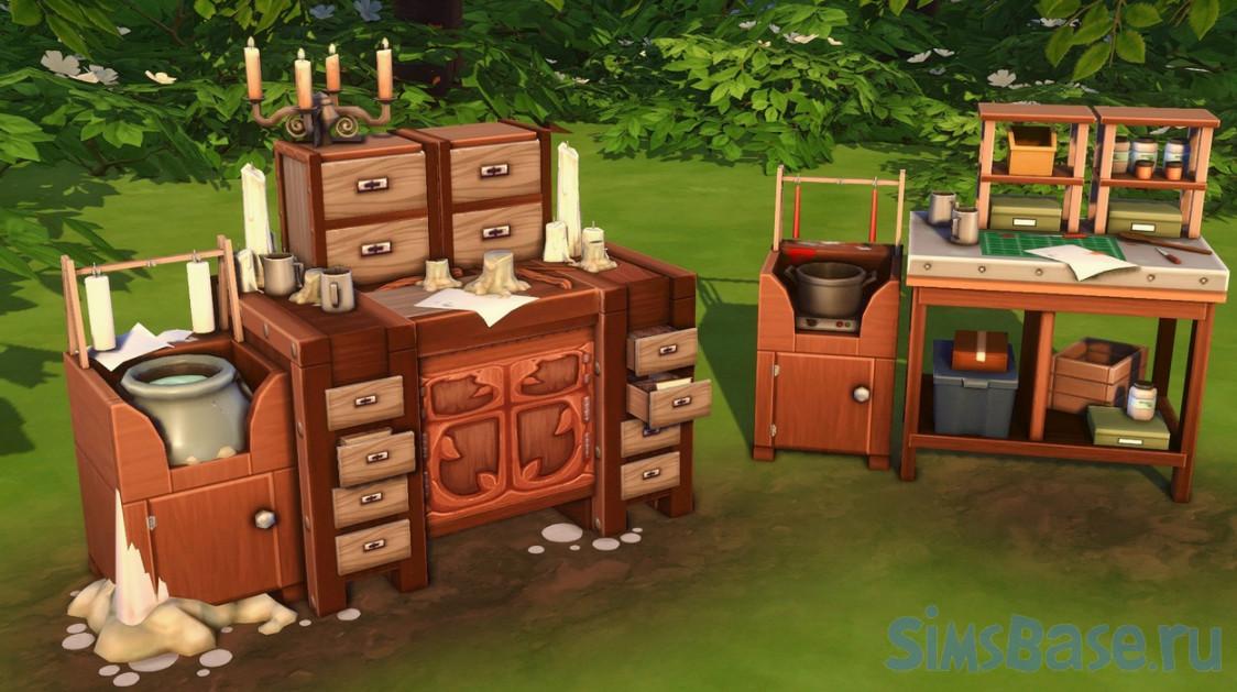 Часто бывает так, что строишь дом или стилизованный район в средневековом стиле или волшебном, а многие предметы функциональные имеют совершенно неподходящий внешний вид. Этот набор призван изменить существующее. Вы найдете новый стол для спиритических сеансов, химическую лабораторию из расширения На работу, преобразователь и стол для создания свечей из расширения Экологичная жизнь, новые версии пианино. Все предметы сохранили свой функционал.