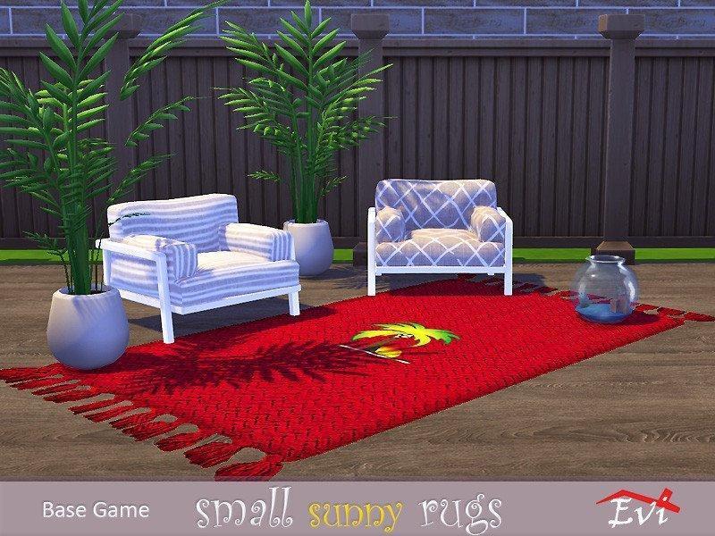 В набор входят три разновидности больших ковров, которые пожно положить и в гостиной и в комнате отдыха и даже во внутреннем дворике. И везде они будут уместны. Две вариации ковров с рисунком по центру, одна без всего, однако все три достаточно ярких цветов.