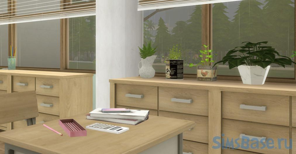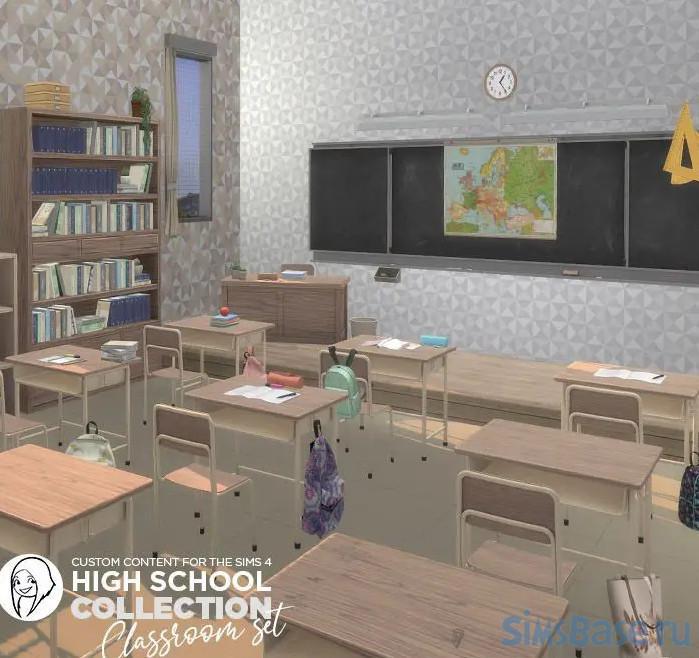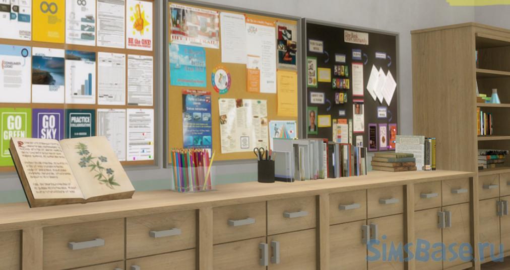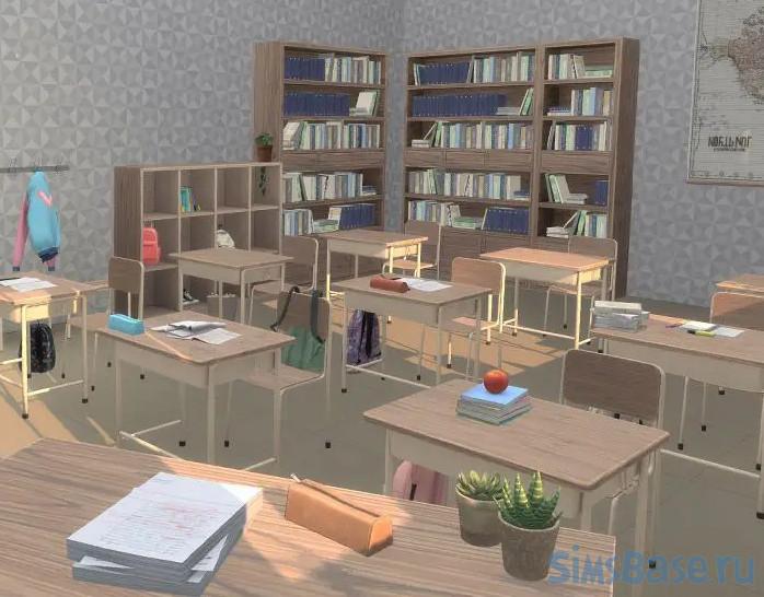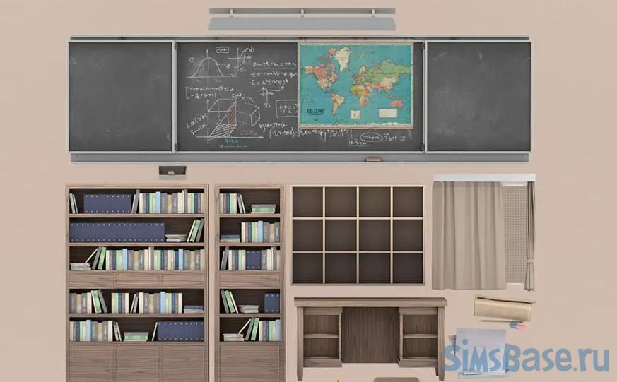 Коллекция объединила в себе большое количество мебели и декора для строительства школ. Различные доски, карты, доступные на английском языке и симлише, шкафы, парты, стулья, книги, цветы, освещение и многое другое. Множественные цвета, единый стиль – строить учебные классы или кабинеты для практикумов станет интереснее и проще.