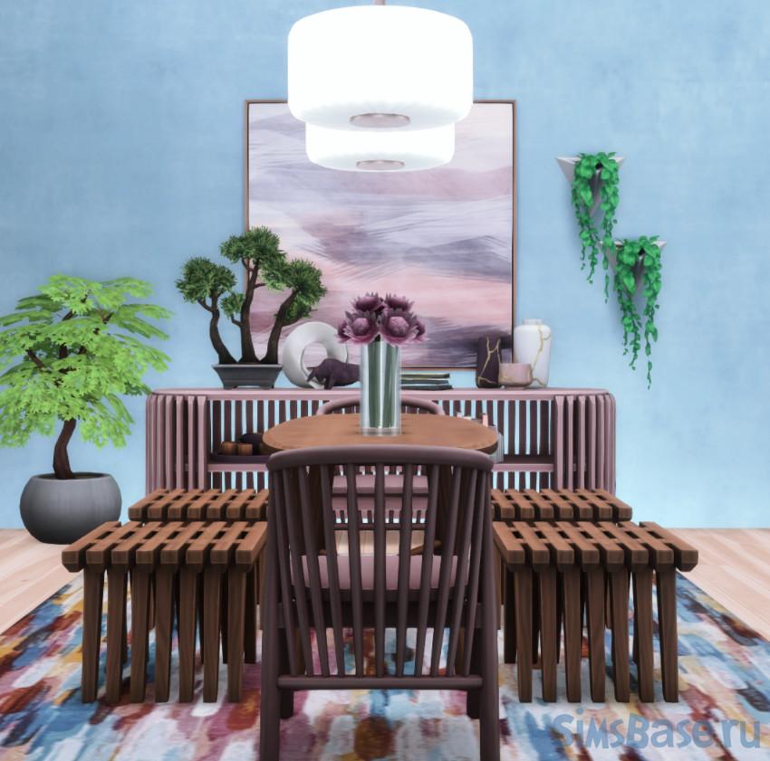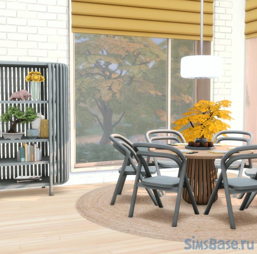 Набор «Обед в Китаяме» – японско-скандинавский фьюжн с 26 новыми предметами. Комод и шкаф имеют слот для телевизора, в шкаф может поместиться только небольшой телевизор. Книга путешествий складывается. В наборе, столы, табуреты, стулья, витрины, подвесной декор, цветы в разных вариантах, освещение и многое другое. Есть как скрины готовых комнат, так и gif файл с представлением всех предметов . Все предметы имеют цветовые варианты от 16 до 36 шт.