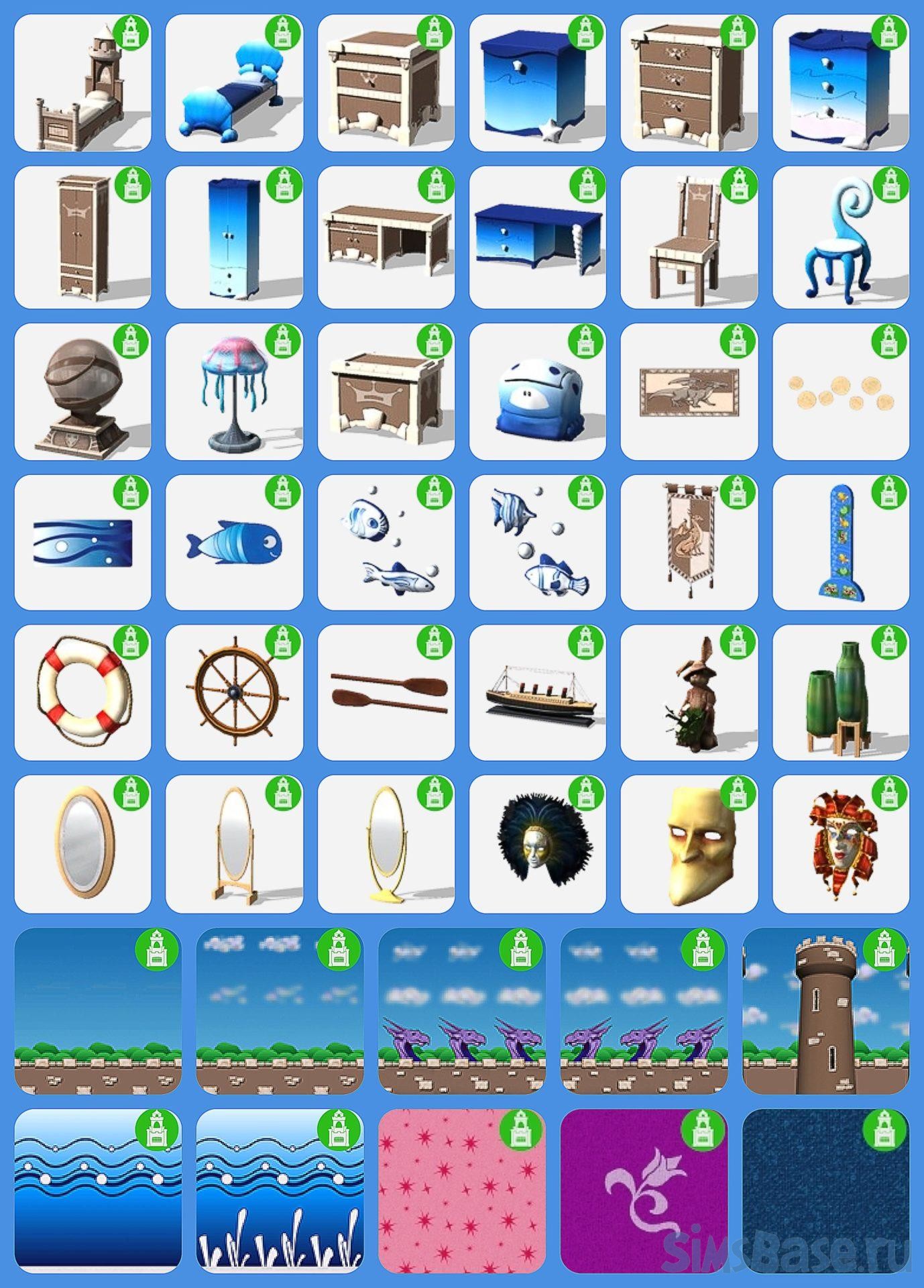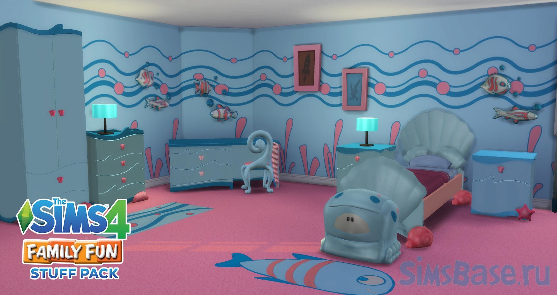 Набор мебели, декора и отделки стен и пола детских комнат. Создайте сказочную комнату принцессы или подводный мир русалок. В наборе совершенно новые шкафы, кровати, коврики, тумбы, столы, шторы, стулья, обои и пр. Коллекция объединила более 40 предметов в разных расцветках. В большинстве модели создавались заново и не являются “перекрасками” (recolor) уже существующих в игре.