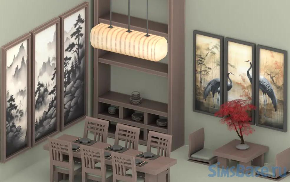 Коллекция объединила три больших набора мебели и декора в восточном стиле. Отлично подойдут для постройки участков расширения Снежные просторы или просто любых тематических зданий. Светильники, стулья, низкие кресла, столики, растения в камнях, картины, шкафы, кровати и многое другое. Есть несколько статуй, заборов, ворот, почтовых ящиков и не только.