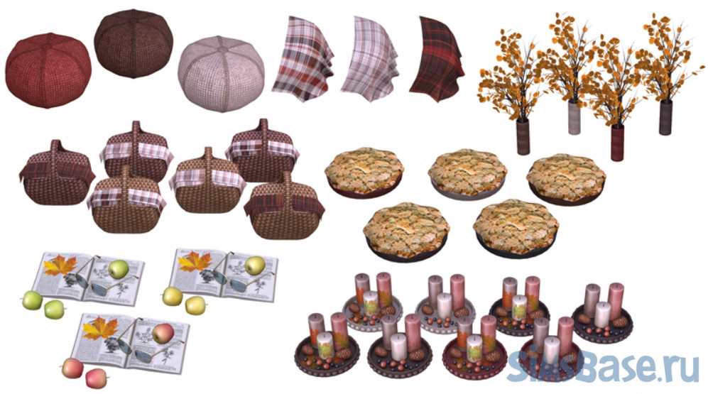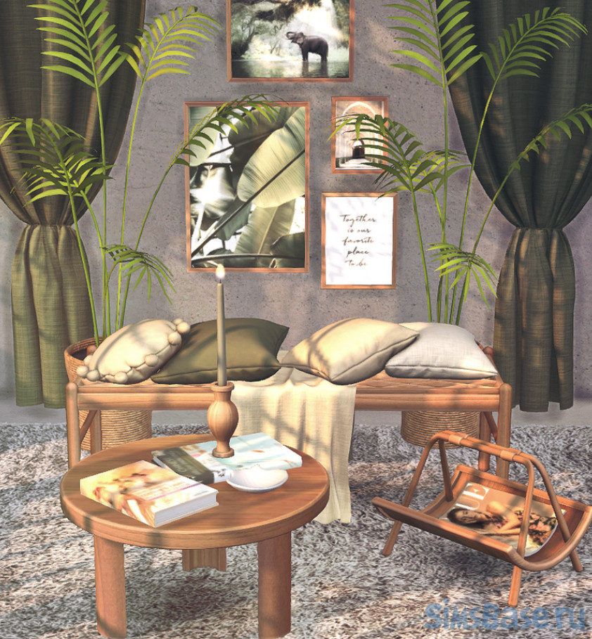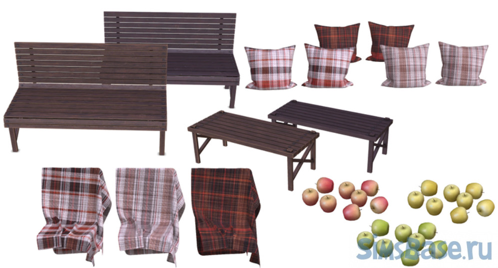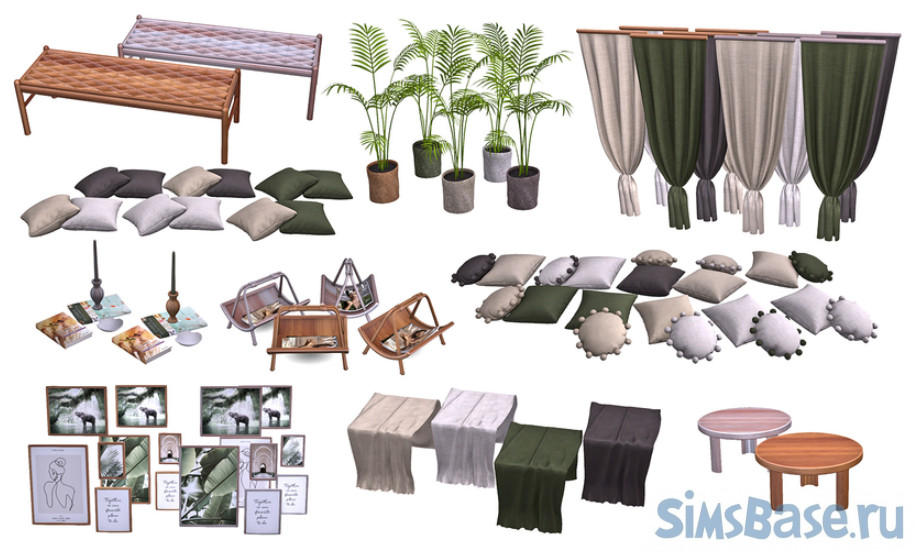 В коллекции большое количество предметов мебели и декора для обустройства сада, загородного участка, деревенского домика и пр. Подушки, скамейки, пледы, светильники, фрукты, столы и сервизы – предметов очень много. Они также отлично подходят для использования в пляжных вариантах участков, джунглях и пр.