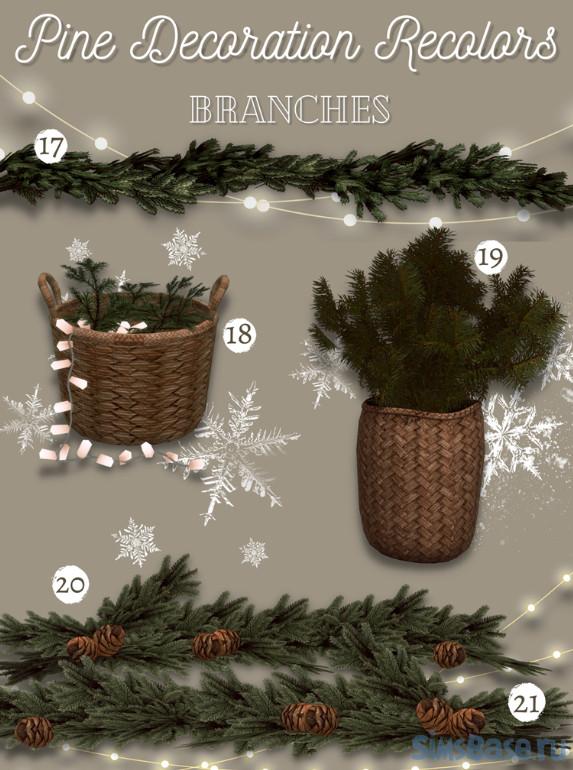 Большой набор разного винтажного декора включает в себя подушки, плакаты, картины, вывески. А также есть разные виды и вариации елей, хвойных веток, венков праздничных, со снегом и с инеем, без всего, гирлянды и многое другое. Украшать здания в игре можно до бесконечности.