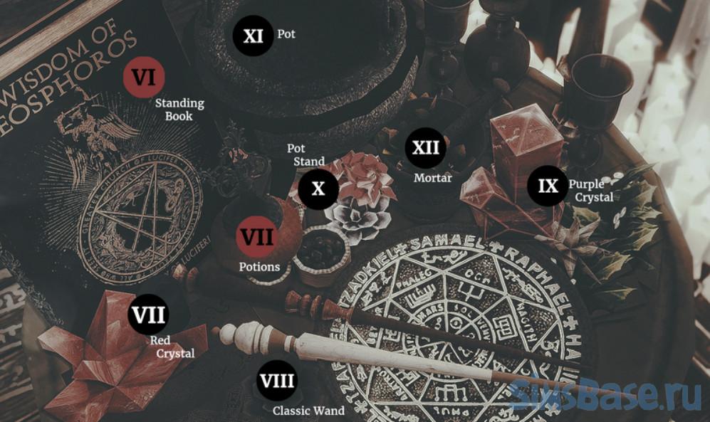 Набор из 25 мистических предметов, который может использоваться магами, ведьмами, вампирами и прочими оккультными героями. Мы намеренно разделили этот набор и предыдущим с зарисовками этого же автора, т.к. они могут использоваться как вместе, так и самостоятельно. В этот набор входят книги, карты Таро, кристаллы, листы бумаги с записями, палочки, черепки, ступки и многое другое.