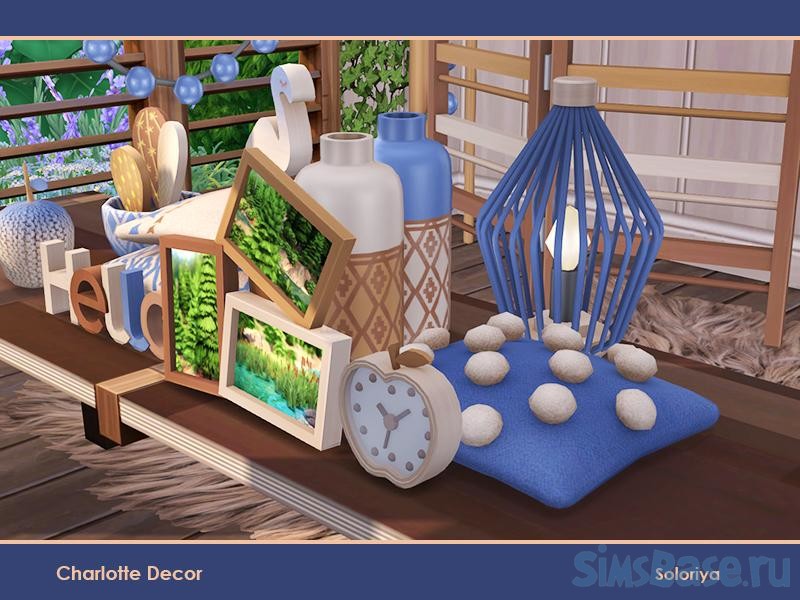 Набор декора в стиле бохо. Всего 10 предметов: подушки, лампа, картины, часы, фламинго, ваза и т.д. Выполненные в разных цветах и немного «грубовато» – эти предметы смогут украсить как комнаты в особняках, так и в квартирах. Лучше подходят для комнат в домах Сулани.