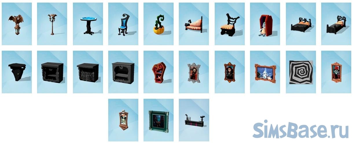 Весьма необычный набор предметов, который подойдет для мистических антуражей. Все предметы уникальны и их нет ни в одном расширении. Например, живые картины, функциональные тумбы и не только ЭТО…