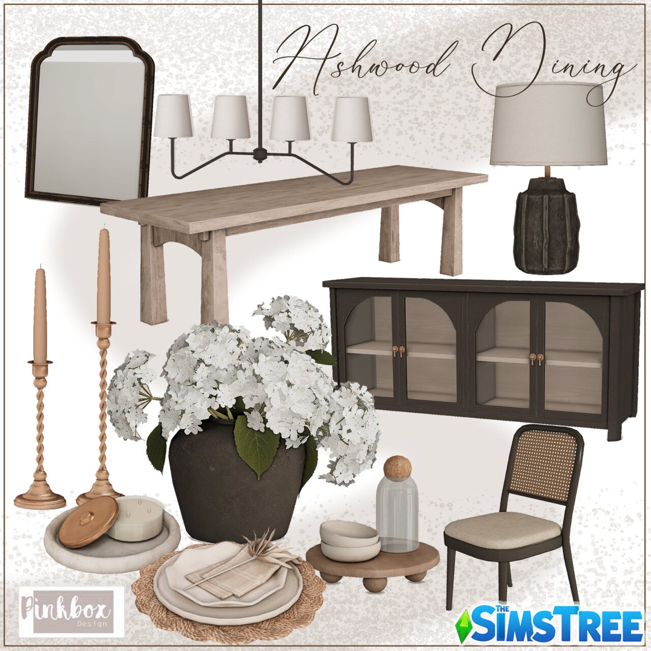 Привет, друзья! Представляю вам новый эксклюзивный набор Ashwood Dining от Pinkbox AnYe — идеальное решение для создания уютной столовой в вашем доме в The Sims! Этот сет включает 11 свежих меш-объектов, которые гармонично сочетают в себе элегантный рустик, классическую традицию и современные акценты. Представьте: массивный обеденный стол из тёмного дерева с текстурой натурального ясеня, который выглядит так, будто его только что принесли из старого английского поместья, но с лёгким современным блеском. Рядом — удобные стулья с мягкой обивкой в приглушённых тонах, подчёркивающей тепло домашнего очага. Добавьте сервировочный буфет с резными деталями, где можно разместить семейные реликвии, и элегантный сервант для посуды — всё это создаст атмосферу, где каждый ужин становится праздником.