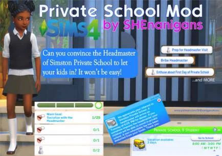 В моде появятся новые мудлеты и взаимодействия, среди которых вы сможете хвалить своего ребёнка и даже приукрашивать его успеваемость! Но будьте осторожны: ваш ребёнок может стать высокомерным, ведь теперь он будет учиться в школе Симстона и часто будет задирать нос