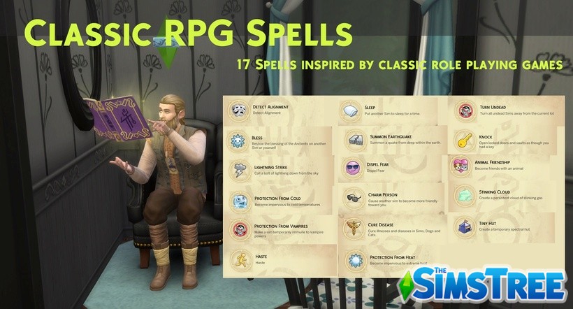 Этот мод добавляет 17 уникальных заклинаний в The Sims 4, созданных по мотивам классических ролевых игр. Каждое из них имеет практическую ценность в игре и способно оказывать воздействие на персонажей и окружающую среду. Магия открывает возможности управлять эмоциями симов, взаимодействовать с животными, менять условия вокруг, влиять на других персонажей и многое другое.