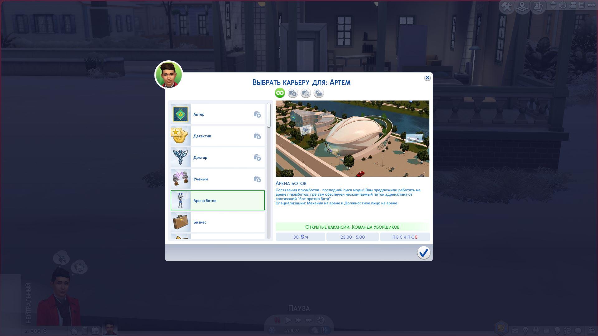 Данный мод добавляет в игру новую карьеру «Арена ботов ». Впервые карьера появилась в Sims 3 In the Future Expansion Pack (Назад в будущее). Теперь же до мельчайших подробностей воссоздана в Sims 4.