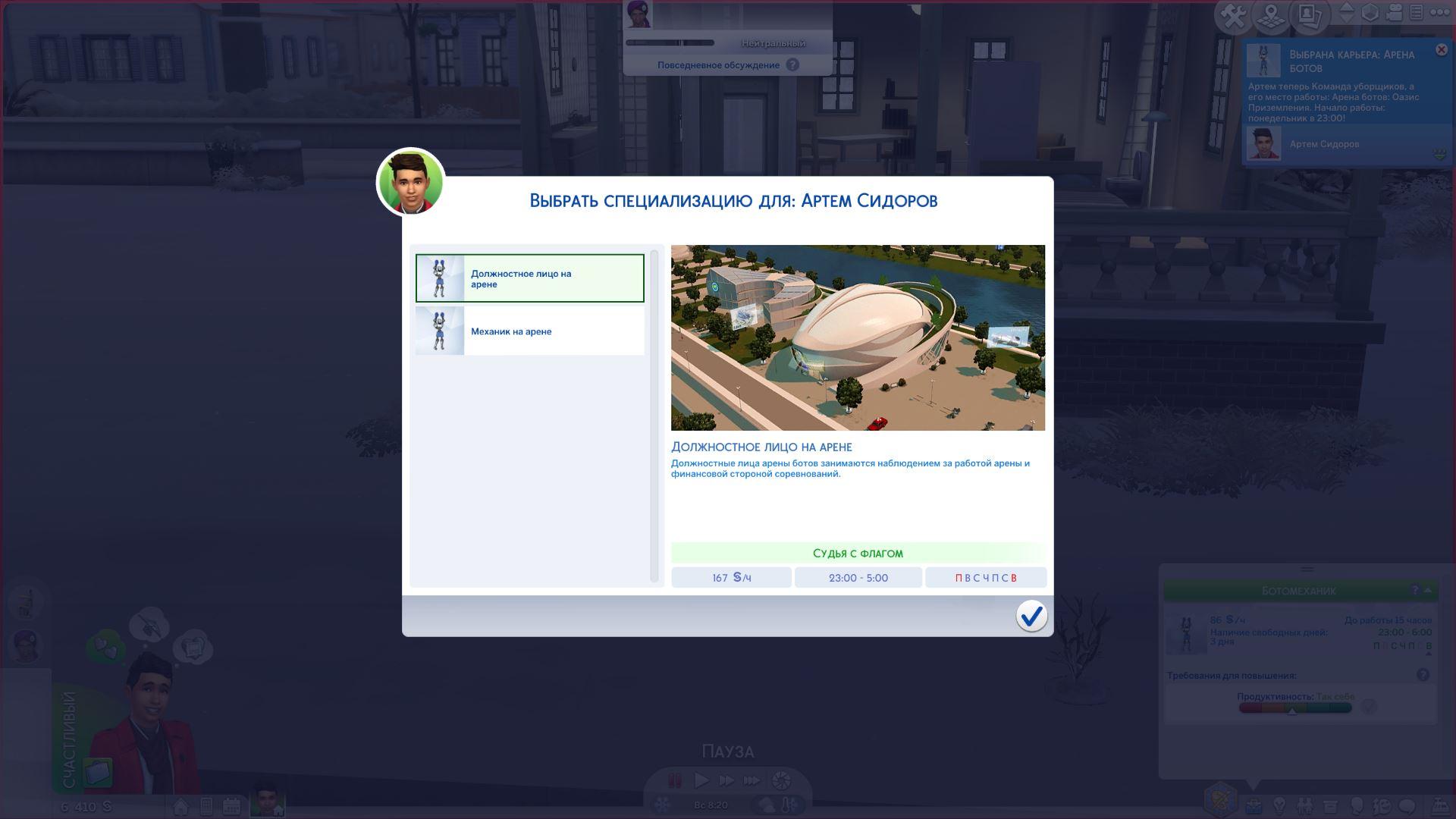 Карьера изначально имеет 5 уровней, затем 2 отделения по 5 уровней в каждом. Вы будете оттачивать различные навыки, включая ловкость, логику и харизму. Разветвления – Механик на арене и Должностное лицо на арене. Все названия были взяты из информации о карьере Sims 3 Арена ботов.