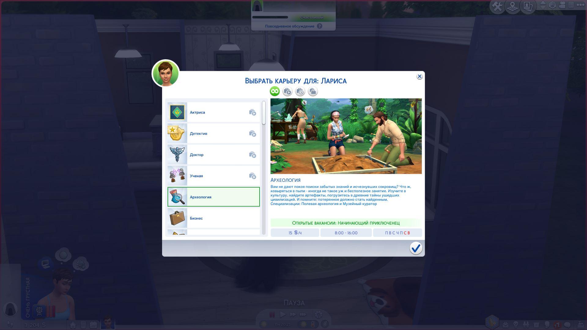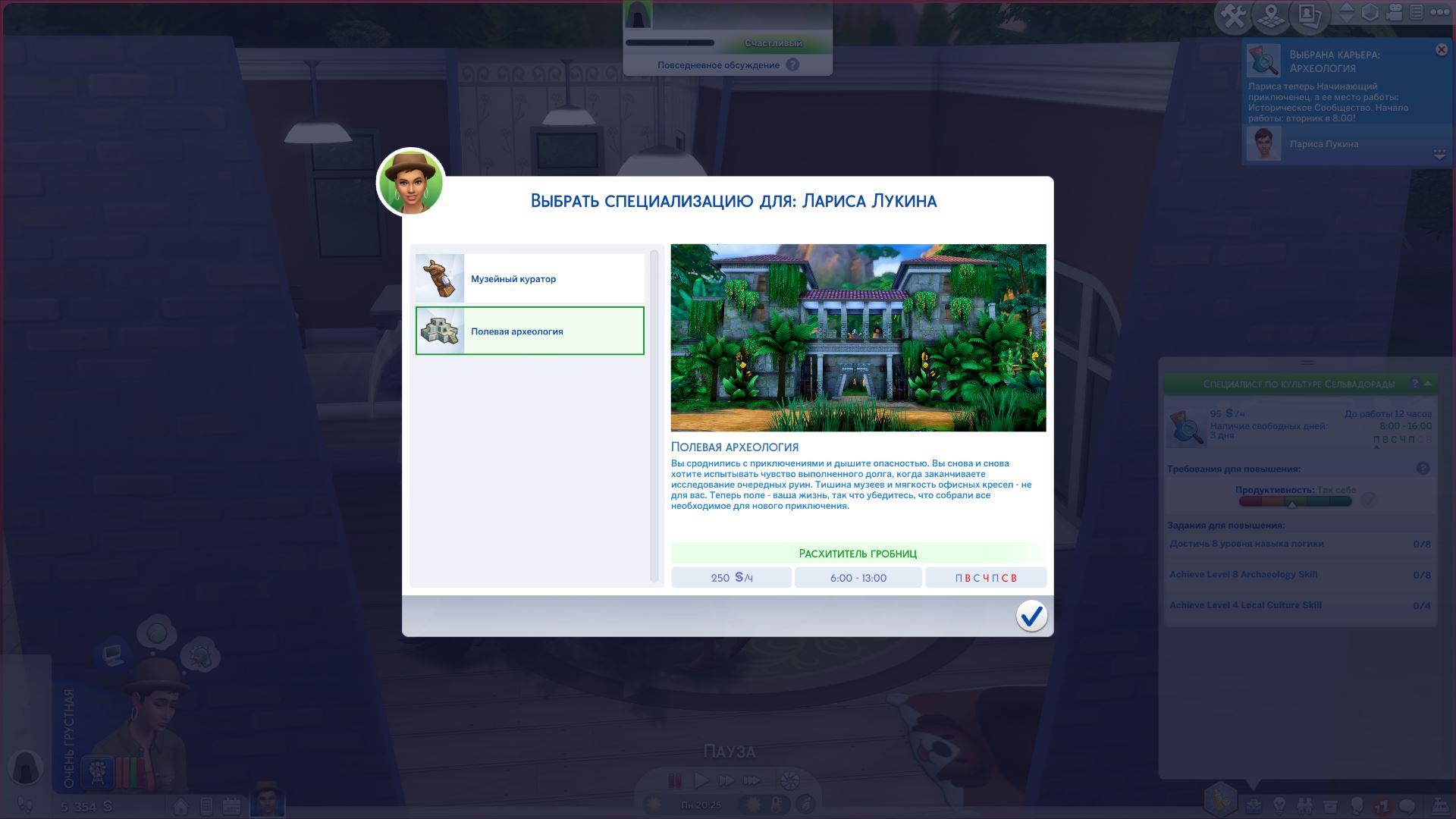 Данный мод добавляет карьеру «Археология». Она небольшая, всего из четырех основных уровней. Но имеет разделение на практическую часть и теоретическую. В течение карьеры предстоит повышать не только навык Археологии, но и Логики, культуры Сельвадорады, Обаяния и иных. Разумеется, симов ждут премиальные и неплохой заработок.