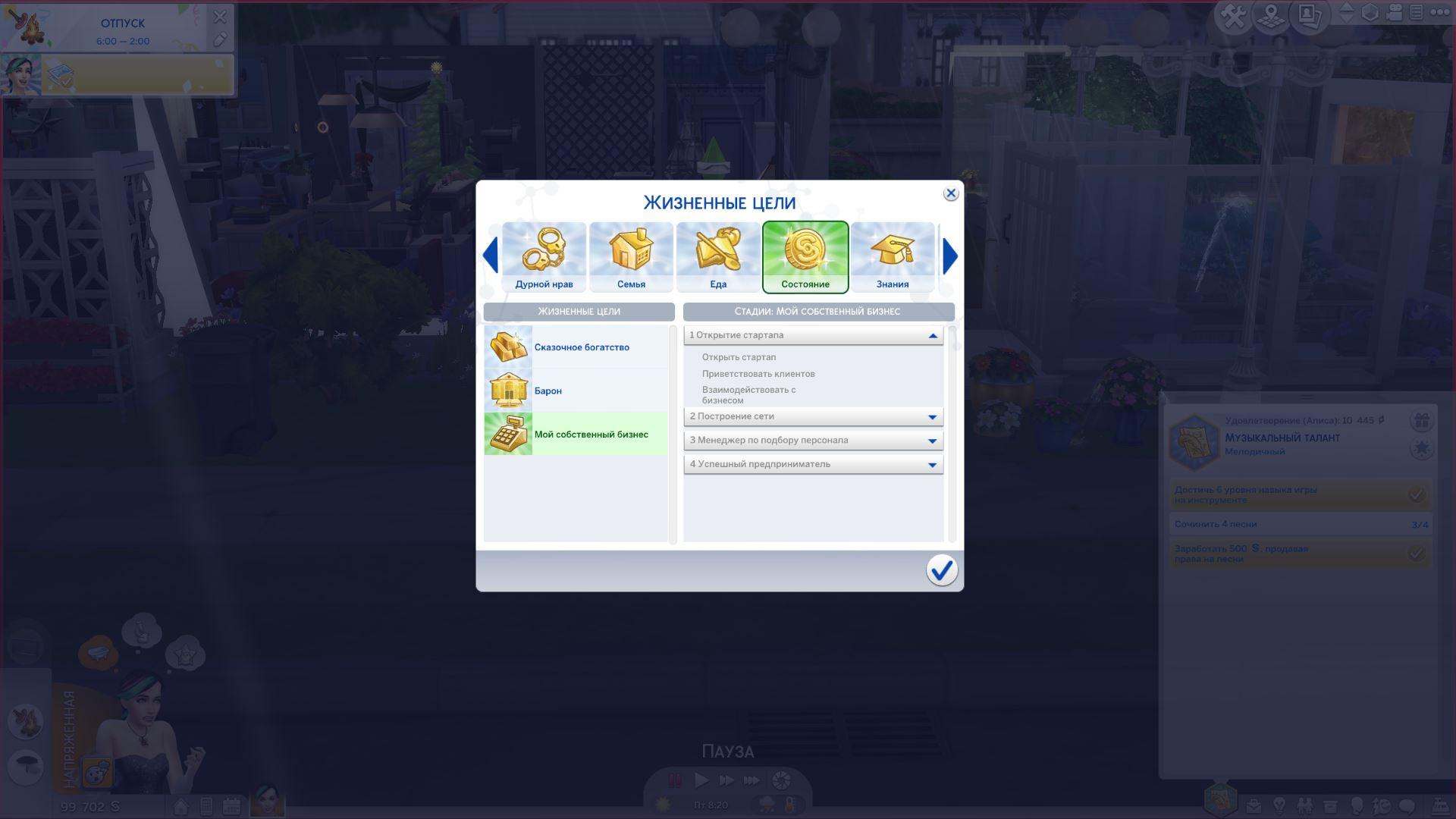 Данный мод добавляет новую жизненную цель именно для тех, кто решил открыть собственный бизнес и зарабатывать только на нем. Причем совершено не важно, какой это будет бизнес – ЖЦ одна и учитывает особенности любого личного дела.