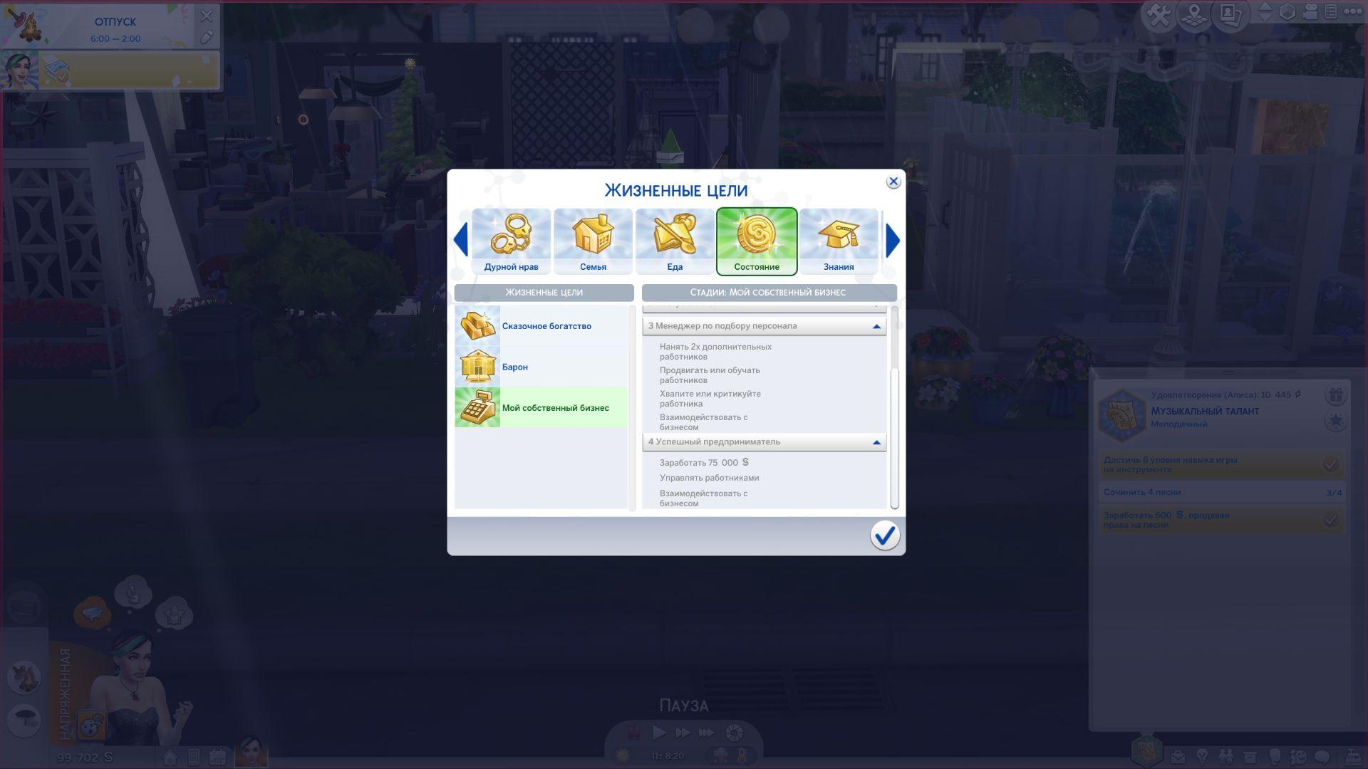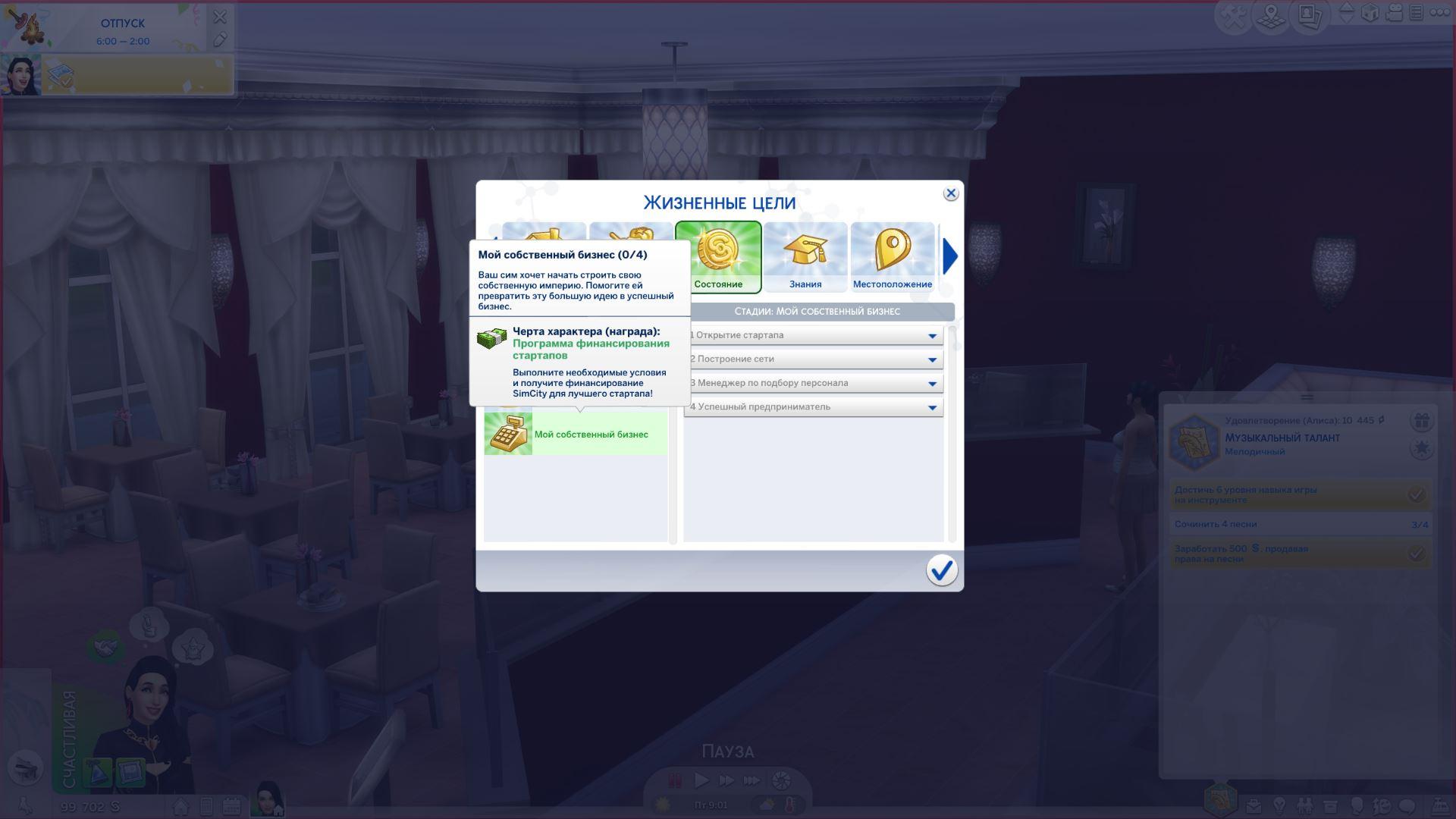 Что же предстоит делать, помимо того, что добиться нормального развития… предположим… кафешки? Заработать 75 000 симолеонов, повышать и обучать сотрудников, разные деловые взаимодействия выполнять, хвалить и критиковать работников и так далее. Даже общаться с клиентами придётся очень много раз. Казалось бы, что всё это и так приходится делать, НО (!) в ЖЦ придется делать по 50-100 раз всё это. И знаете, все действия помогут в действительно быстрее развить бизнес и достичь 5-ти звёзд.