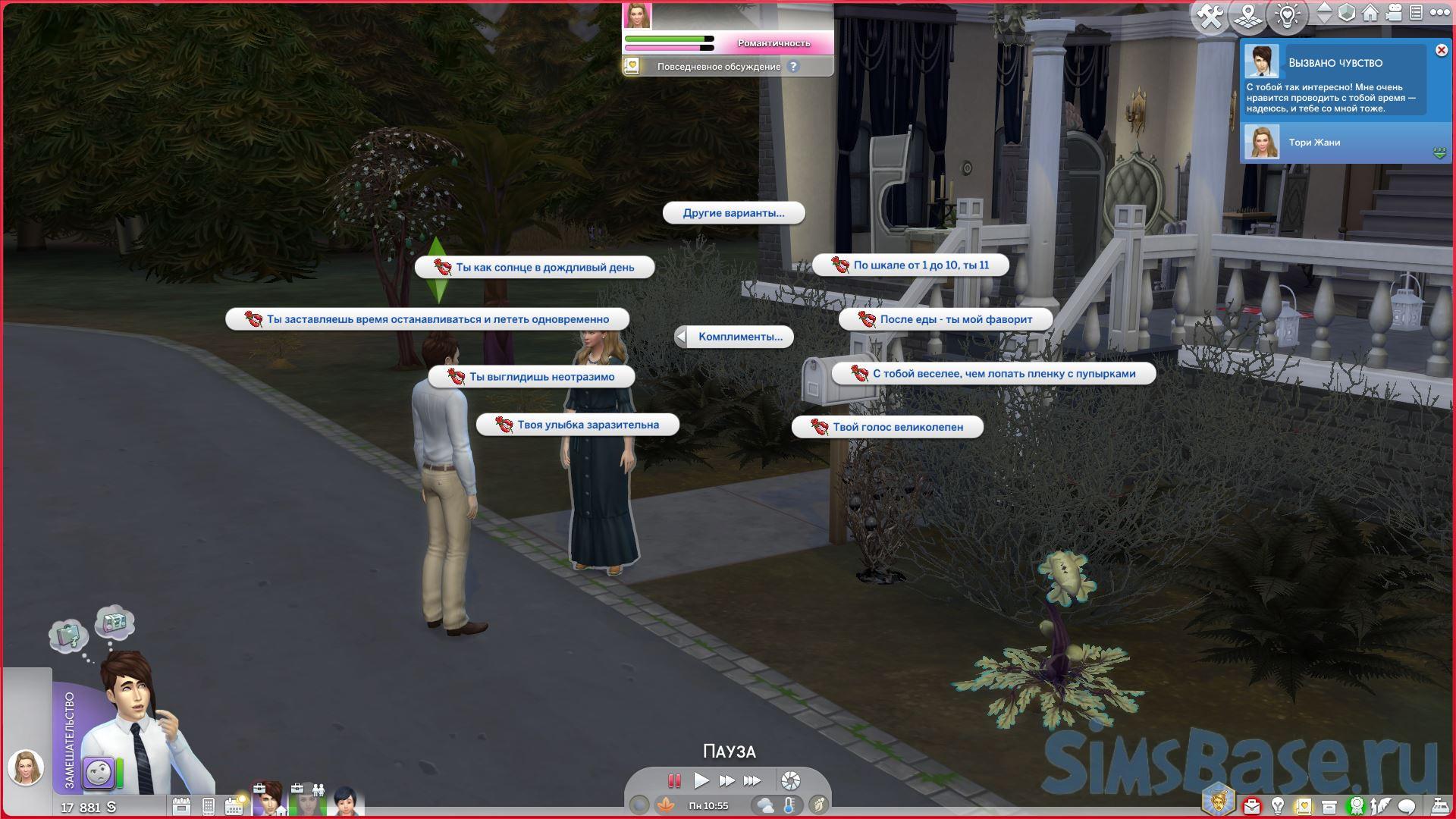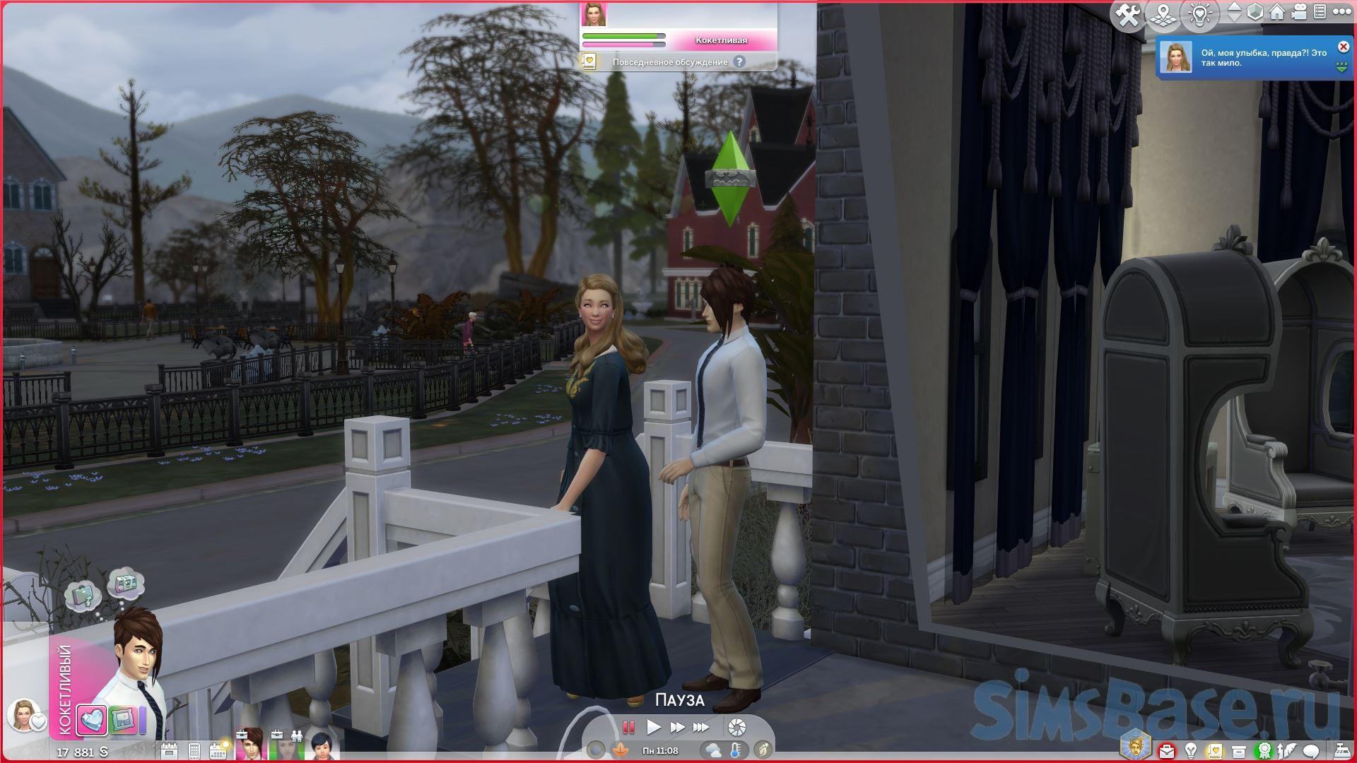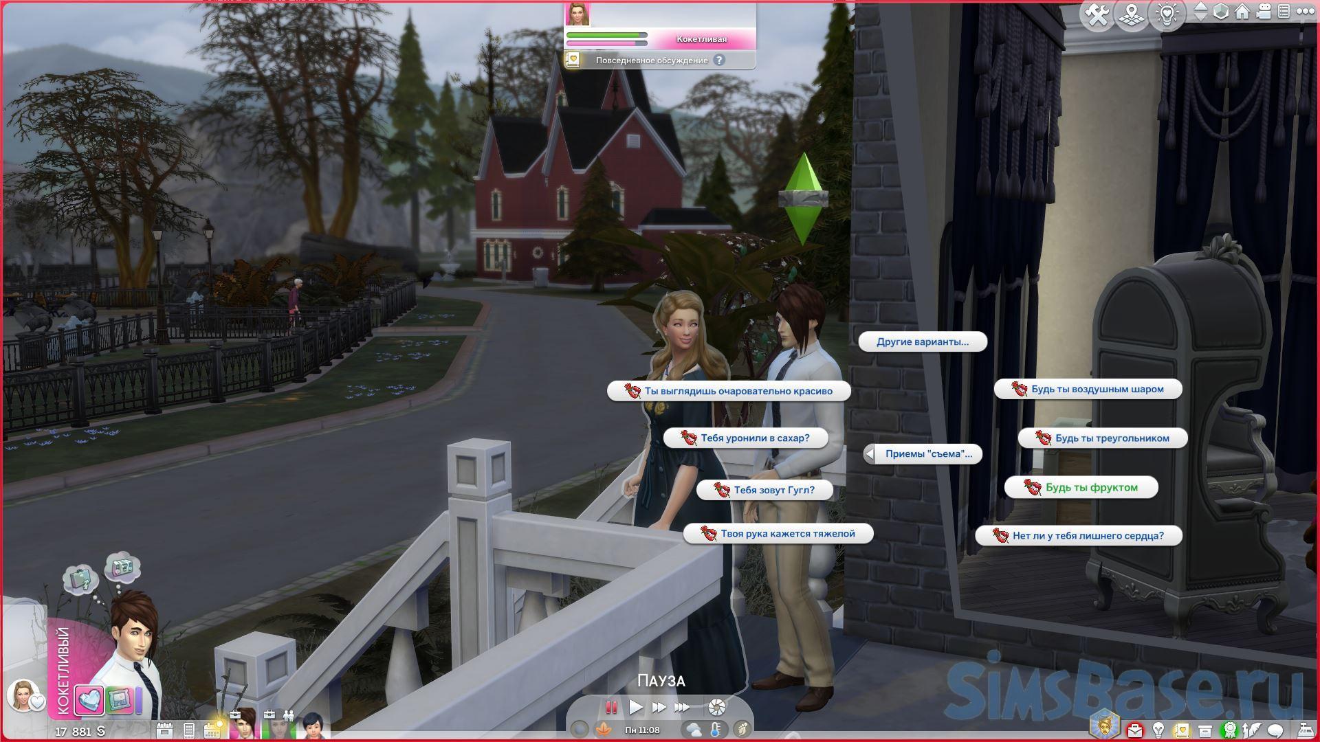 Выберите реплику или комплимент из меню Приемы съема, который вы хотите использовать при флирте с другим симом. Получайте всплывающие уведомления с линией ваших симов + ответ от их партнера.