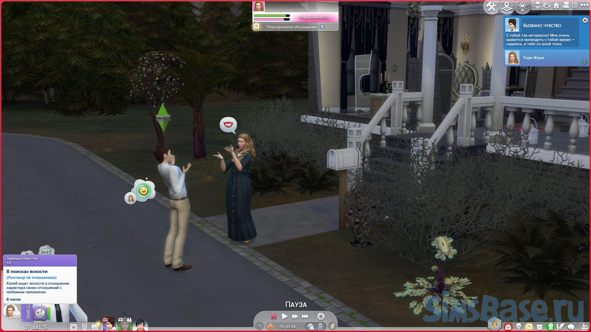 Данный мод вводить дополнительные романтические взаимодействия для симов. При этом темы для бесед доступны не сразу, а зависят от многих условий, характеров, степени увлеченности друг другом, настроения, баффов разных.