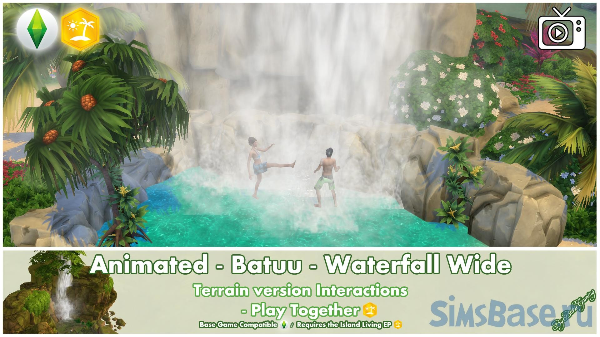 Если вы играете со свойством участка «Жизнь без удобств», то у водопада можно собирать воду и ею пользоваться. Кроме того, можно принимать душ (в купальнике или обнаженным), играть в воде в одиночку или с другим симом. Можно заставить разных симов одновременно принимать душ (водопад бооольшой, места хватит на всех). Они могут это делать по-разному: кто-то в одежде, кто-то обнажённый.