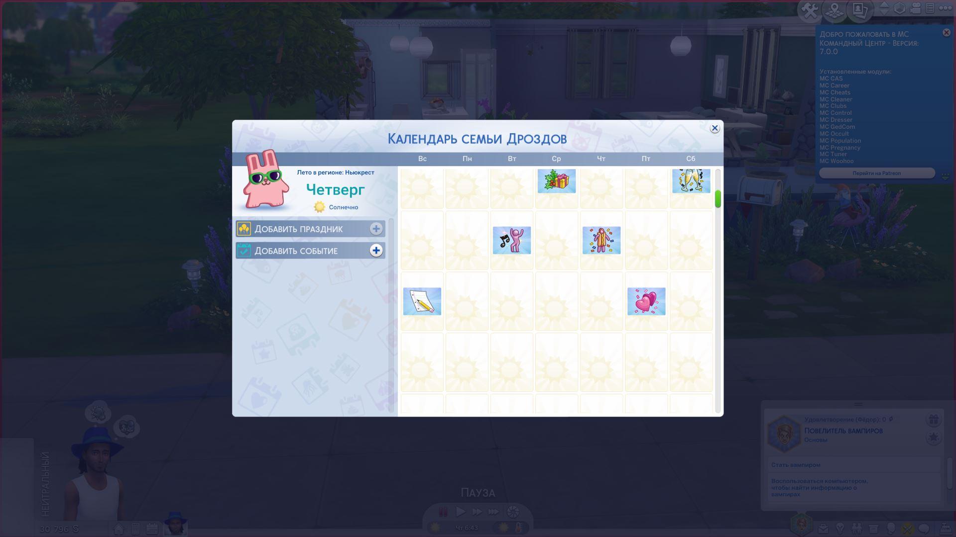 Праздники, события, встречи, мероприятия – всего этого в жизни симов может быть очень много. Если все события ещё имеют отношение к какому-либо времени года, того и подавно очень и очень много. Жизнь симов можно сделать насыщенной и интересной настолько, что календаря может не хватить!
