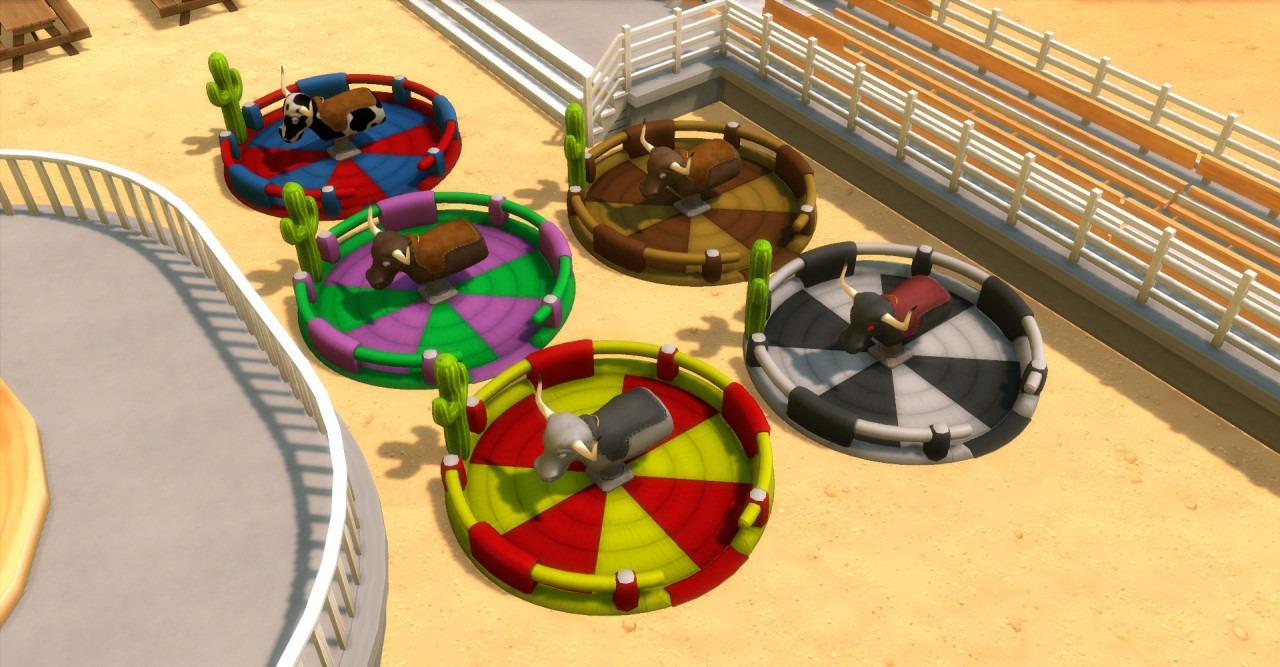 Данный мод добавляет в игру еще одни вид аттракциона – «Механического быка» или аттракцион «Родео». Выполненный в разных цветовых сочетаниях, с набором необходимых звуков и мычания самого быка, с призами – это хорошая возможность проверить насколько ваши симы удачливы. Таким образом парк теперь будет иметь 5 аттракционов: