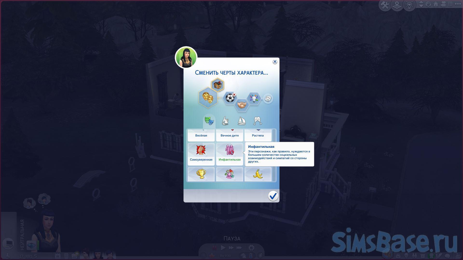 Инфантильным симам требуется обилие привязанности и одобрения, чтобы поддерживать свое эмоциональное благополучие. Они преуспевают в тесных связях и личном признании.