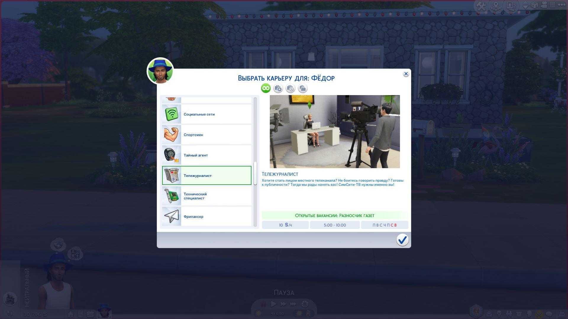 Данный мод добавляет новую карьеру «Тележурналиста ».