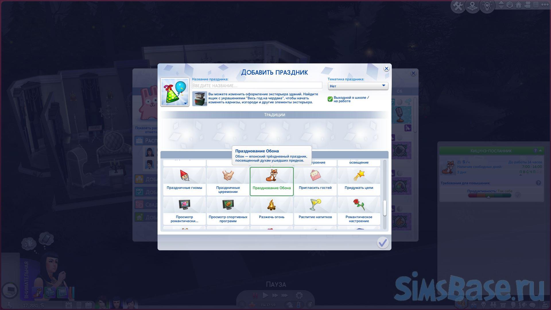 Логово кицунэ добавляет игривую ауру и Празднование Обона – японский фестиваль/праздник, посвященный духам предков. Это уже традиция праздничная, которая доступна в Календаре.
