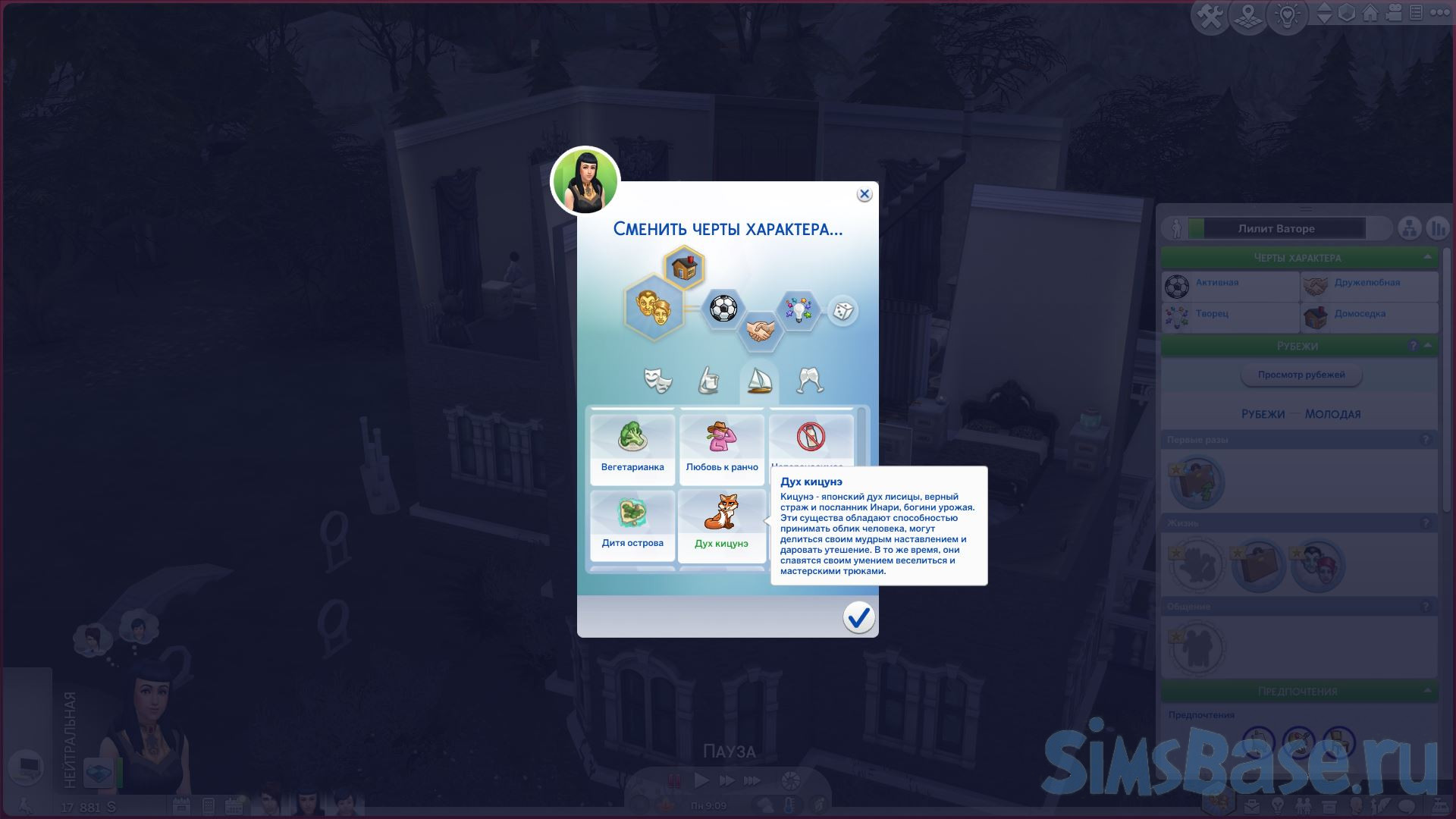 В CAS доступна черта Дух Кицунэ. Усиливает Кицунэ и Ведьму. Также включает взаимодействие, в котором вы можете поделиться своей связью с симом-ведьмой.