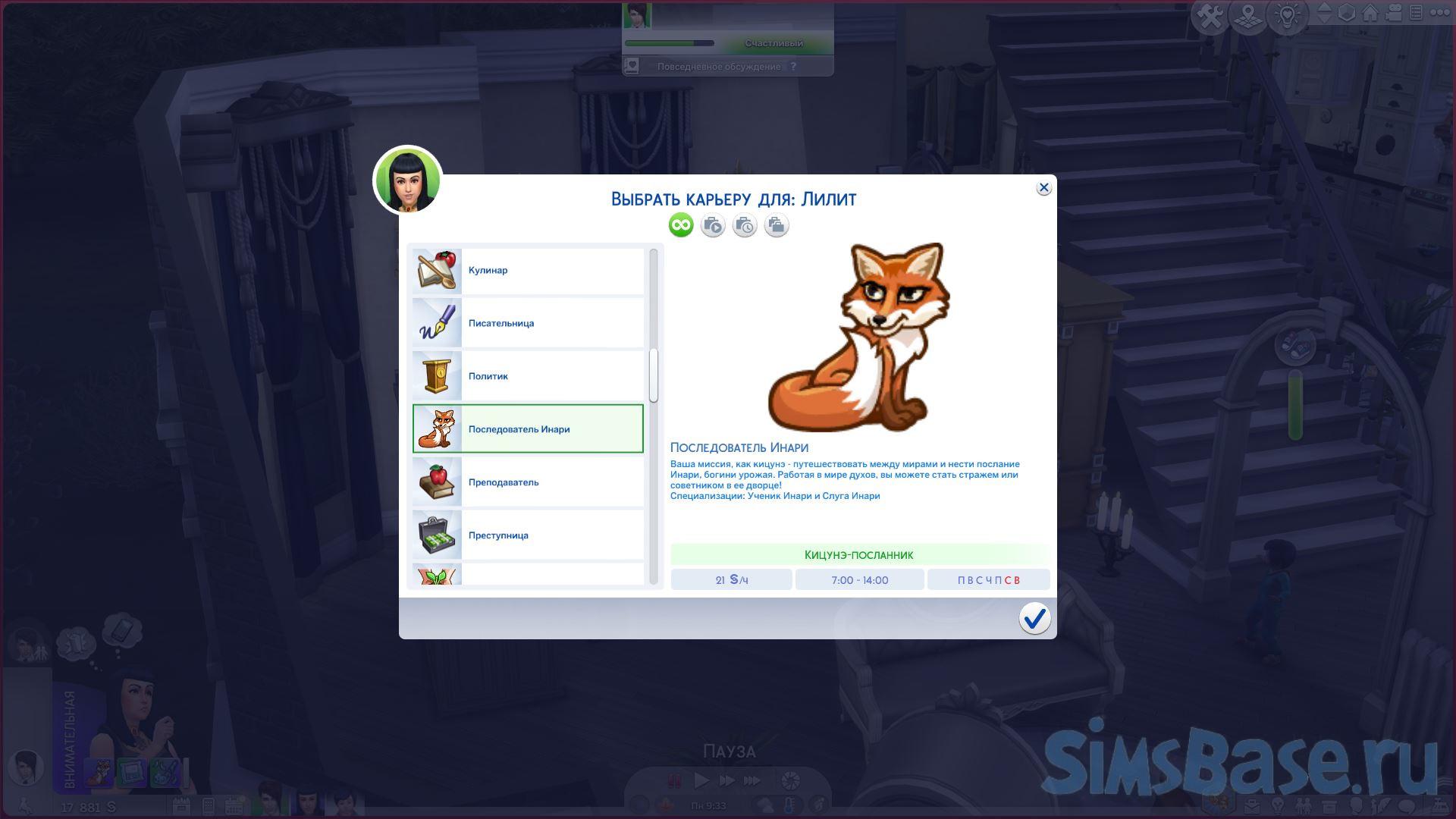 Для того, чтобы погрузиться в образ жизни Кицунэ есть карьера Последователи Инари. Включает в себя 10 уровней, есть наградная черта, взаимодействия. Карьера представляет собой «кроличью нору» без каких-либо заданий. Но выплаты будут идти каждый день и рост производительности труда тоже, а значит и повышение.