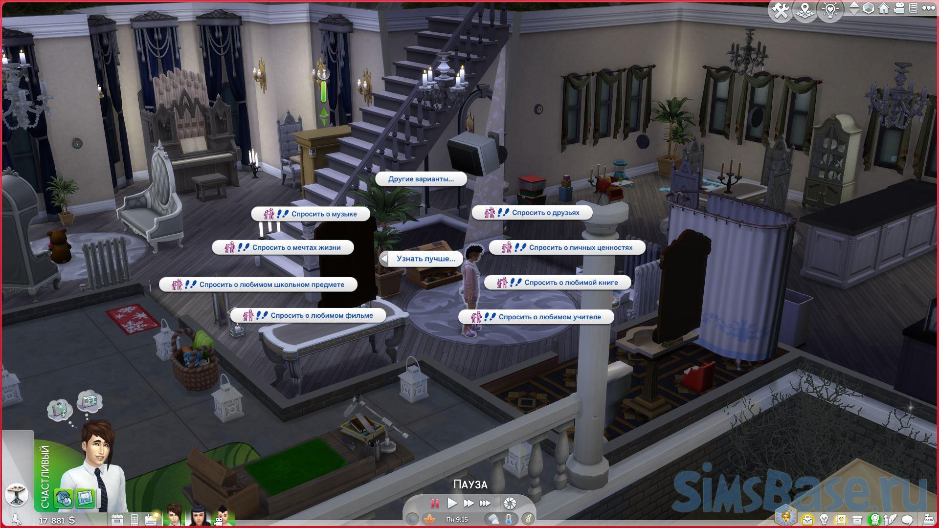 Здесь вы сможете задать своему ребенку вопросы, чтобы «познакомиться» с ним! Имейте в виду, что ответы случайны, поэтому они не будут соответствовать личности сима. Однако там, где это имеет смысл, сим на некоторое время запомнит свой предыдущий ответ. Например, его любимая книга или фильм могут измениться только по прошествии 1 сим-недели.