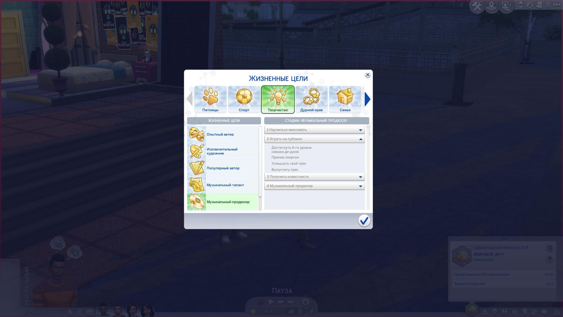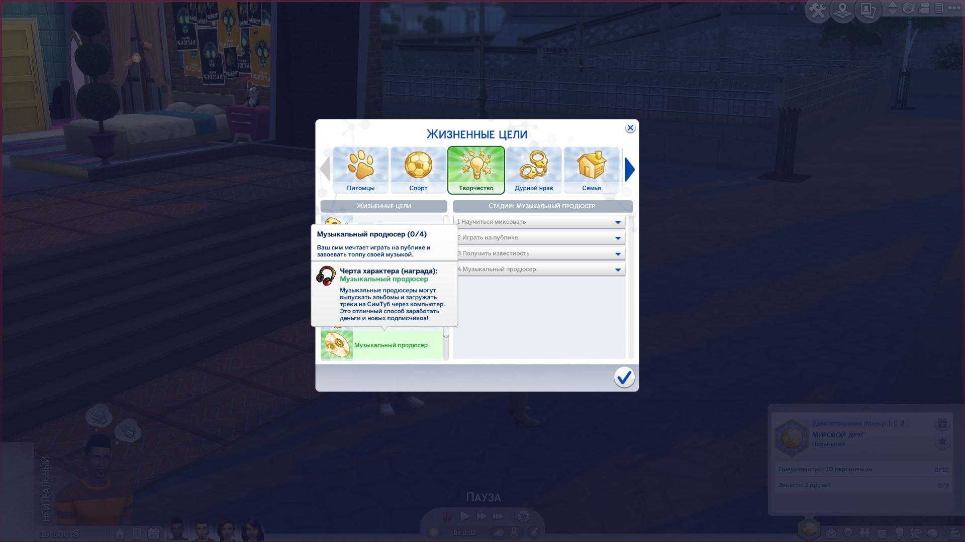 Данный мод добавляет необычную жизненную цель «Музыкальный продюсер». Симу предстоит прокачивать навык ди-джея, выпускать треки, сочинять песни и продавать их, становиться знаменитостью и не только. В награду, разумеется, даётся черта характера: «Музыкальный продюсер». И как раз она и открывает доступ к новым взаимодействиям.