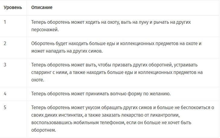 - Можно просто создать оборотня в CAS (режим создания персонажей). Но создавать нужно ребенка с чертой характера “Оборотень”. Потом тортиком взрослеем ребенка до подростка и он сразу получает все способности из мода . Важно: если создать подростка с этой чертой – способностей оборотня , способное временно менять свой облик магическим путём, превращаясь («оборачиваясь, перекидываясь») из человека в другое существо, а также в атмосферное явление, растение или он не получит.