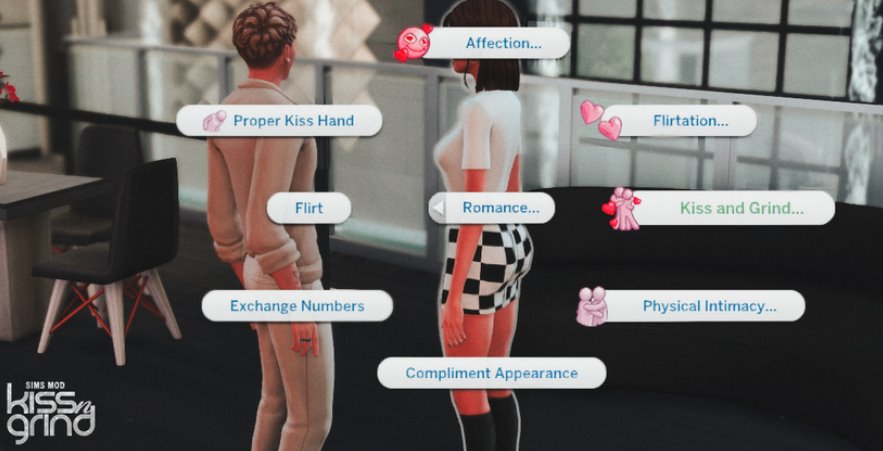 Привет, любители The Sims 4! Представляю вашему вниманию романтический мод Kiss ‘N Grind от UTOPYA_cc — идеальное дополнение для тех, кто хочет добавить страсти и реализма в отношения симов!