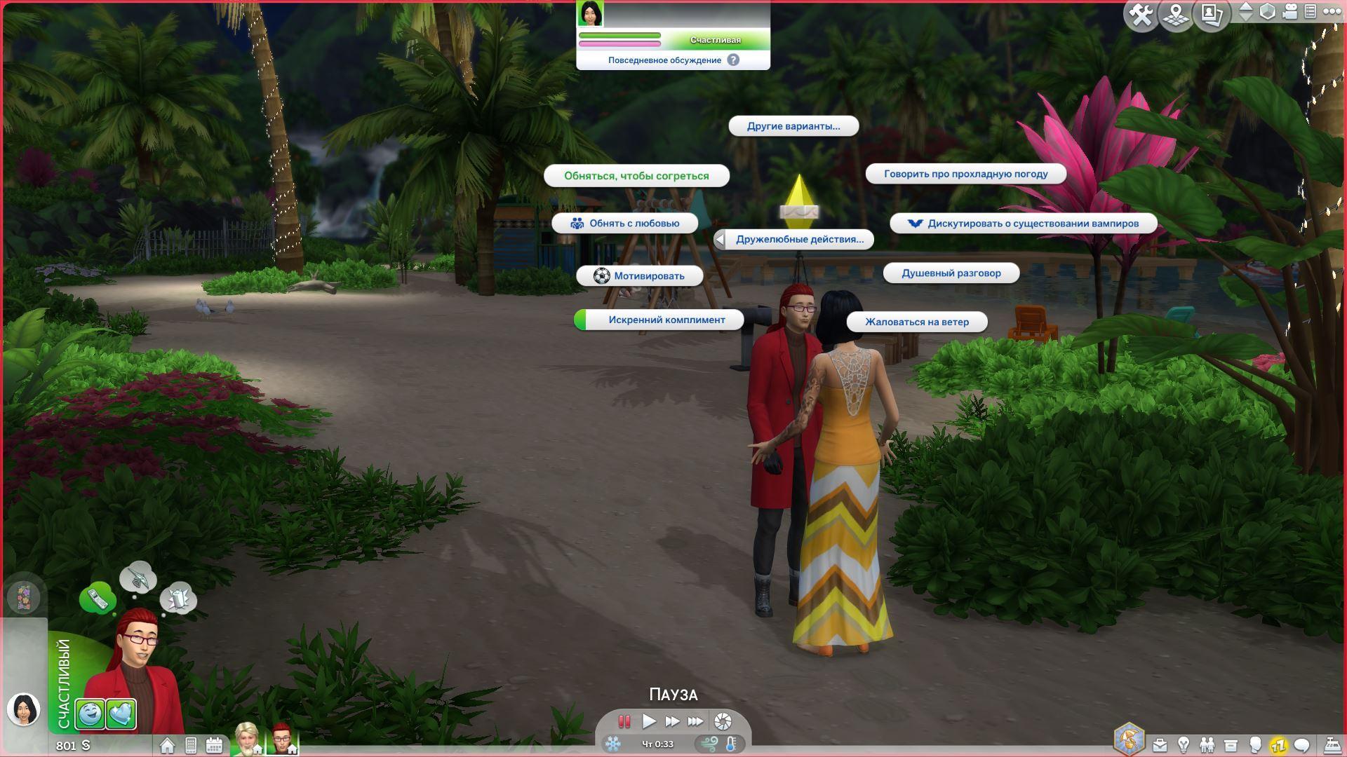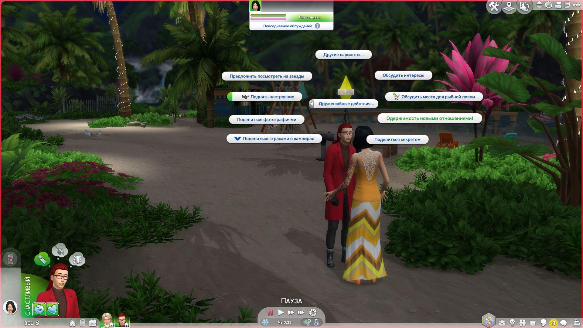 Важно: все эти новые темы диалогов появляются только в том случае, если активен у сима соответствующий бафф. Есть бафф – новые отношения, помолвка , и прочее – тогда и тема для беседы появится.