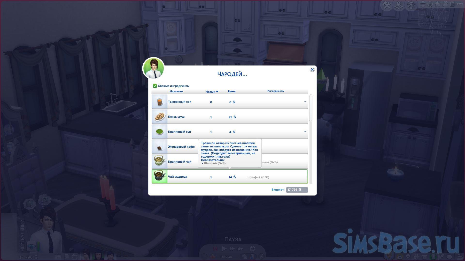 Например, чай с крапивой, который помогает подросткам, страдающим прыщами, печенье из расторопши, которое оставляет у потребителя колючий чертополох на языке , и суп из глаз тритона, который большинству симов покажется отвратительным, но заклинатели с удовольствием съедят его.