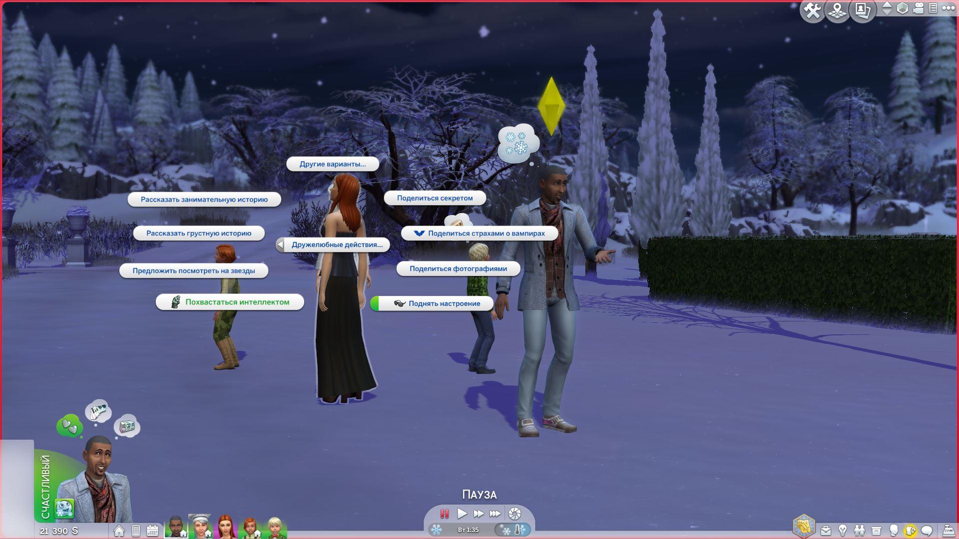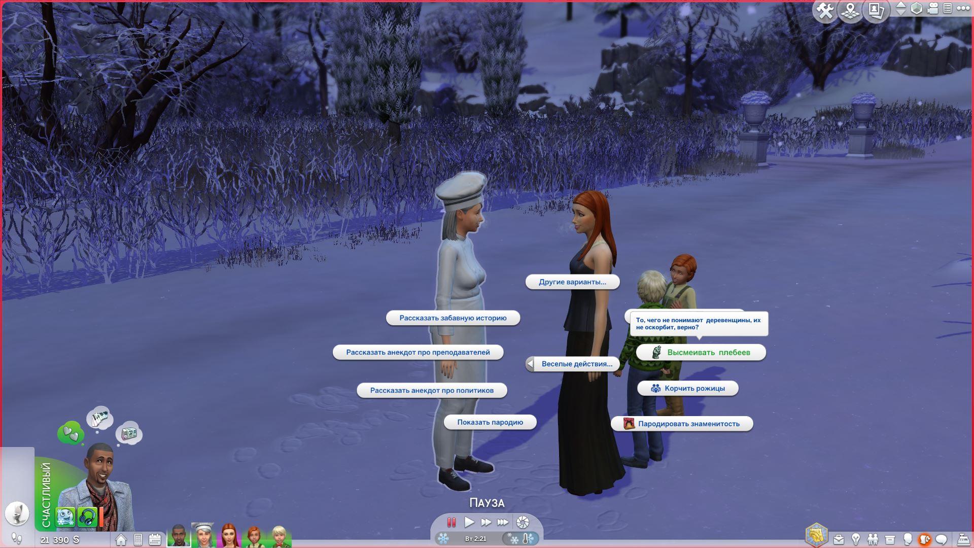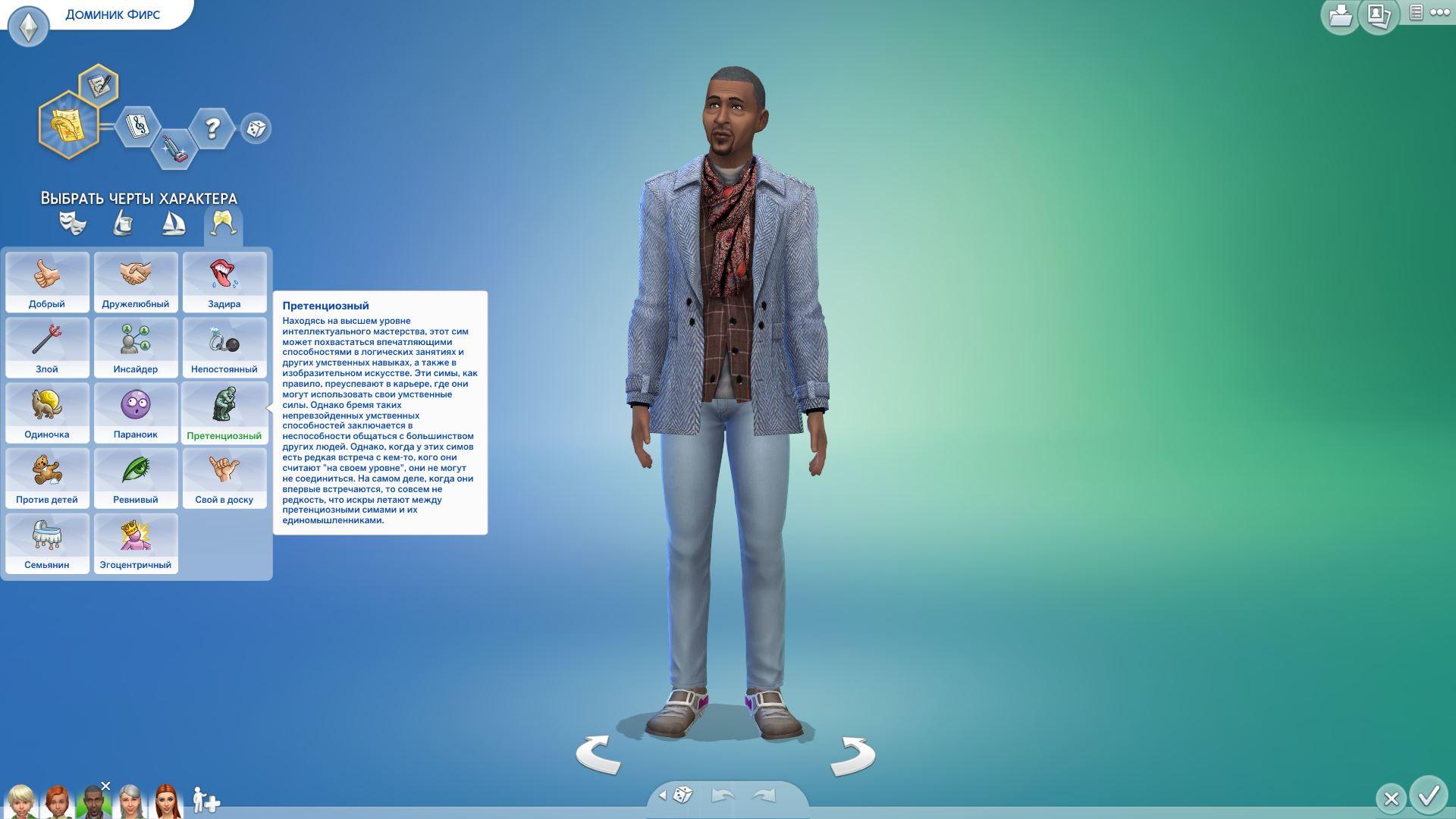 Мод очень насыщенный и непростой, поэтому нужно много разных симов, разных уровней отношений, много взаимодействий и ржизненных ситуаций, чтобы понять и увидеть всю глубину новой черты характера Претенциозный.