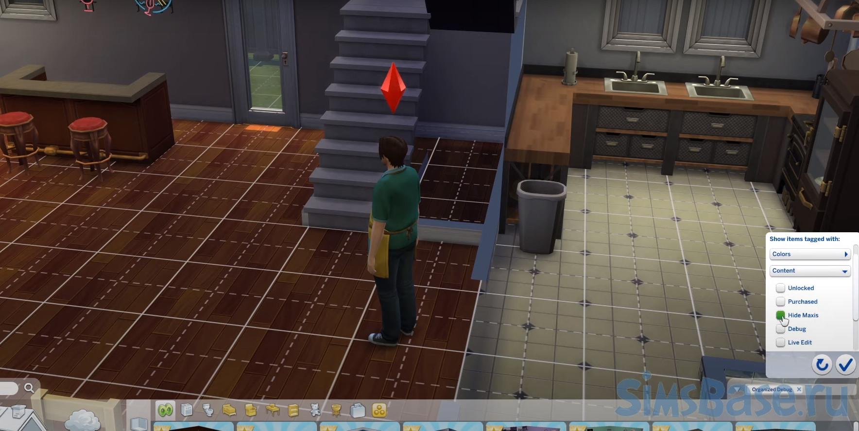 Maxis – скрывает все обычные объекты, которые не являются отладкой, liveedit или cc. Оригинальные предметы, созданные разработчиками.