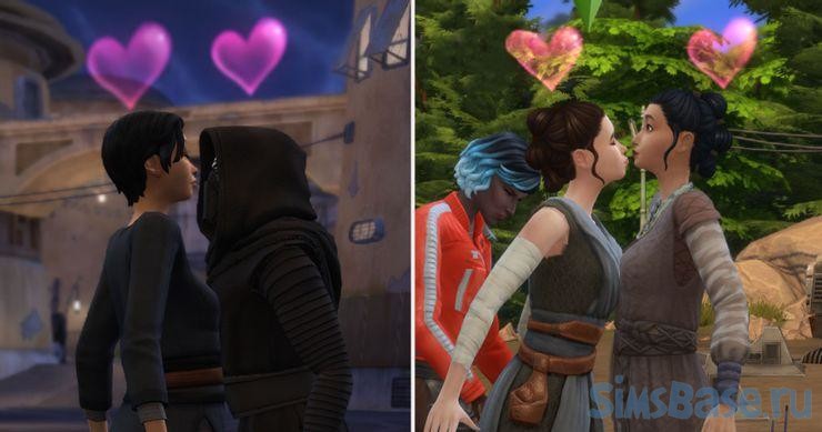 В Sims 4 Путешествие на Батуу можно встретить знакомых героев франшизы Звёздных войн: Кайло Рена, Рей, лейтенанта Агнона и Хондо Онака с Ви Моради. Вот только взаимодействовать с ними привычным образом игровым симам не разрешено. Но…если очень хочется «замутить» роман с Реном, то кто же помешает геймерам?
