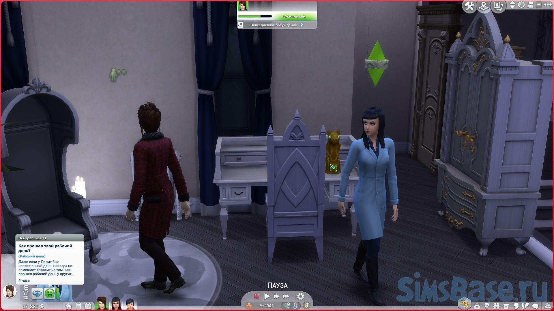 Таким образом, этот мод добавляет не просто много взаимодействий и вариантов общения, но наделяет симов при этом разными баффами, которые длятся 3-7 часов и, как следствие, влияют на жизнь, настроение симов, на их поведение, желание что-то делать или не делать.