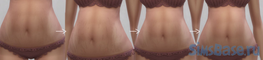 У симов теперь появятся растяжки, как только они войдут в третий триместр, растяжки полностью исчезнут через 3 сим-дня, вы можете отключить растяжки или сделать их постоянными в настройках рождения ребенка.